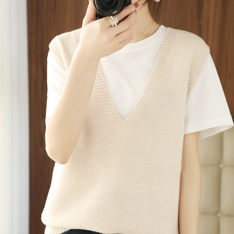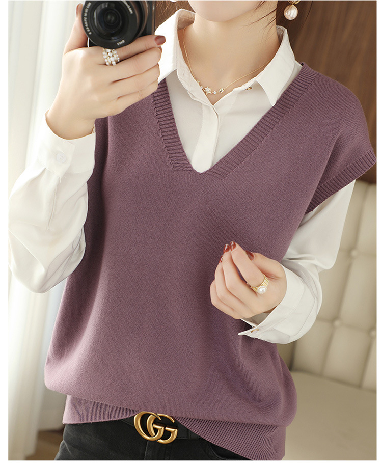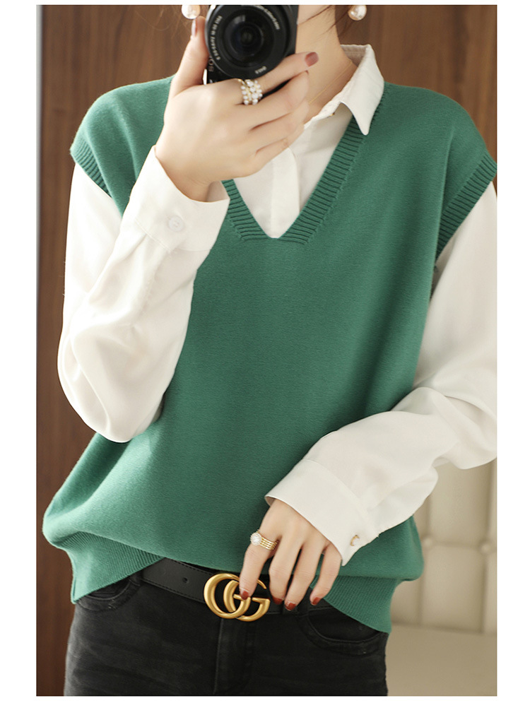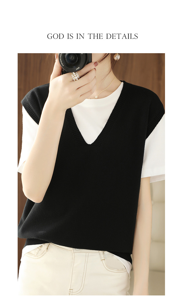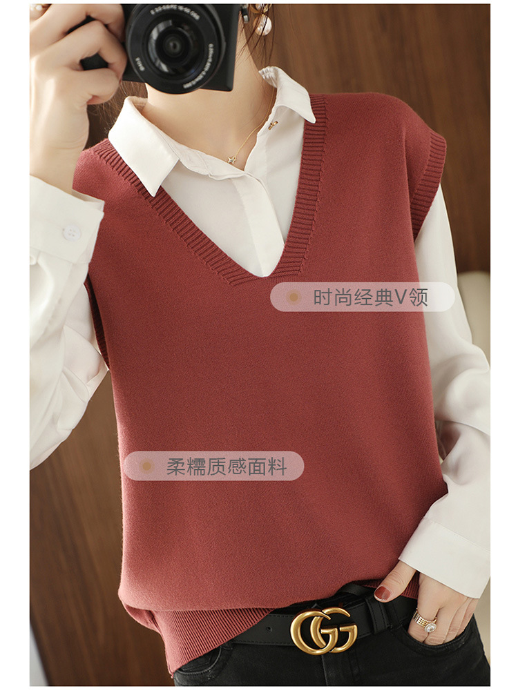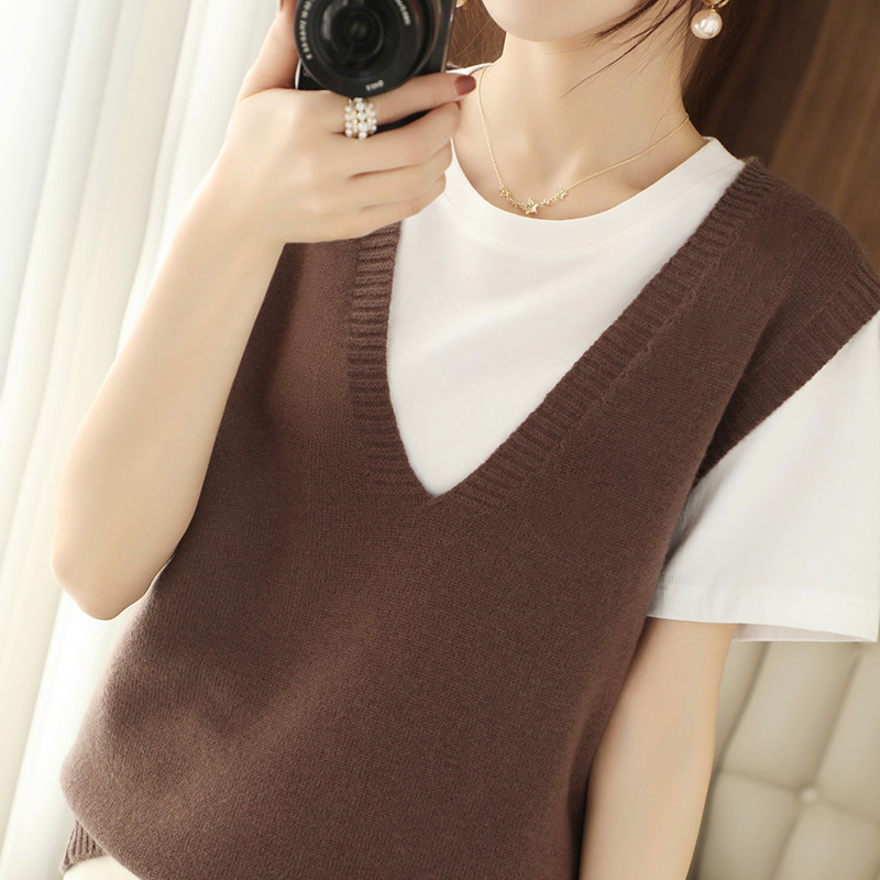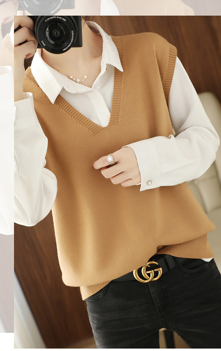 2024 년 초 가을 새로운 스택 울 조끼 니트 조끼 통근 민소매 느슨한 코트 니트 어깨 여성용스토어 가기