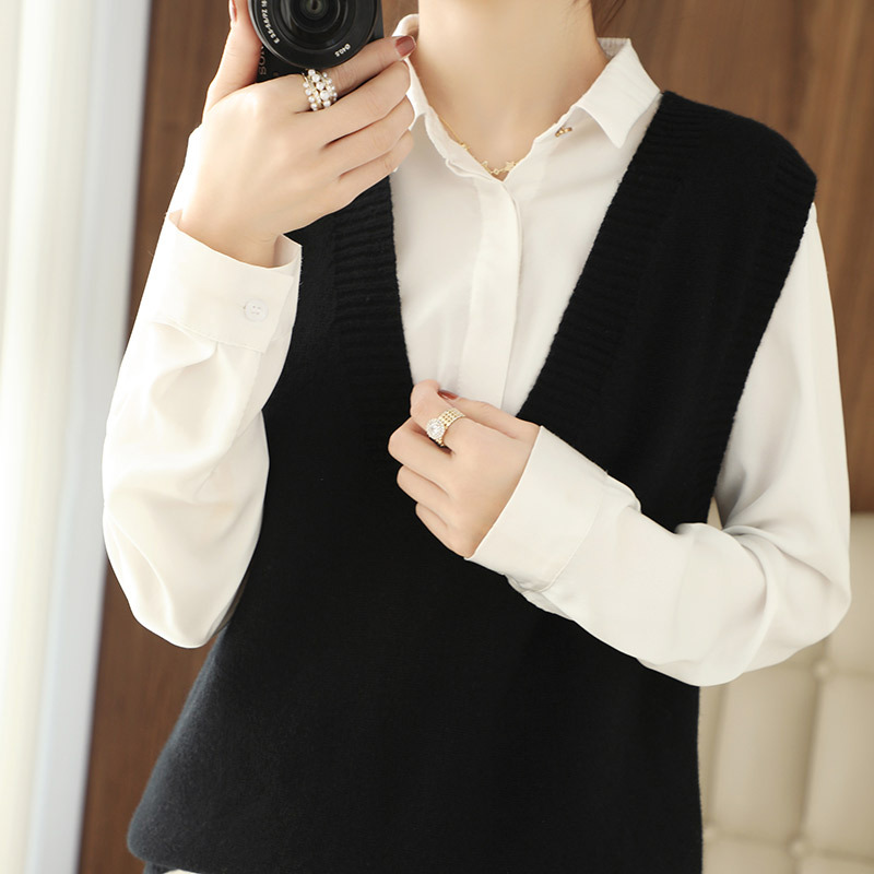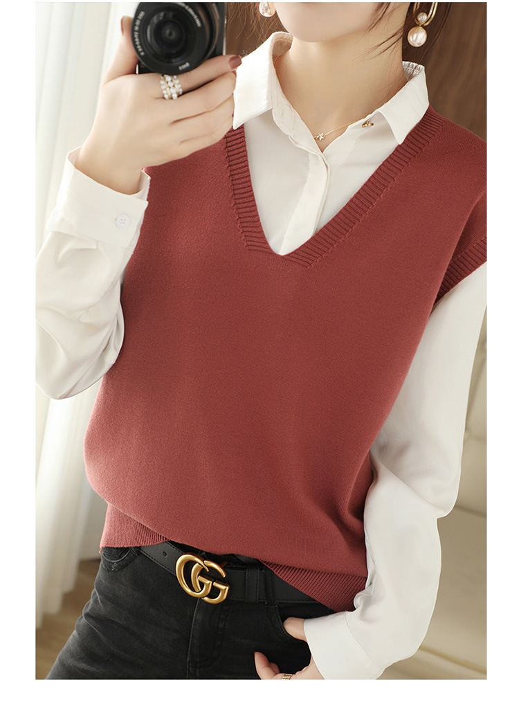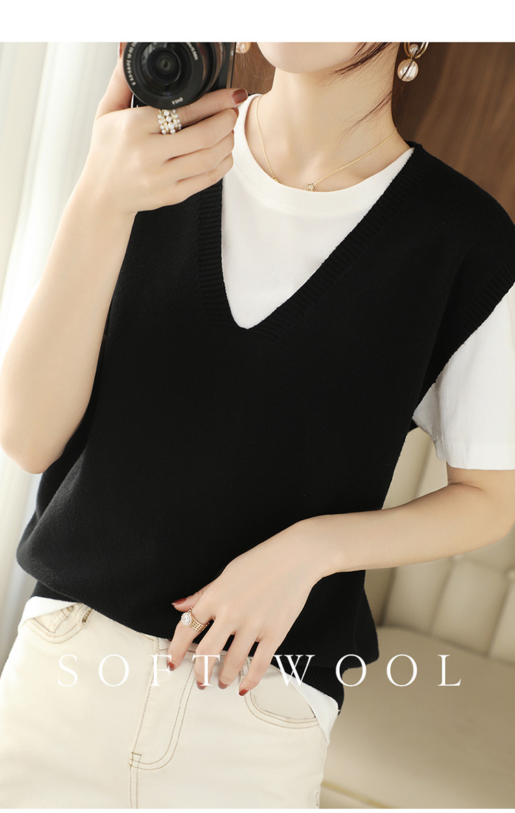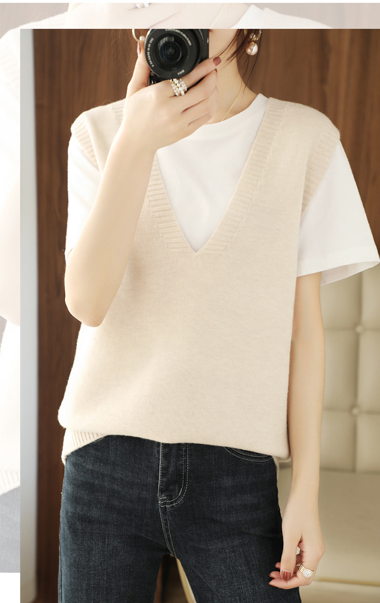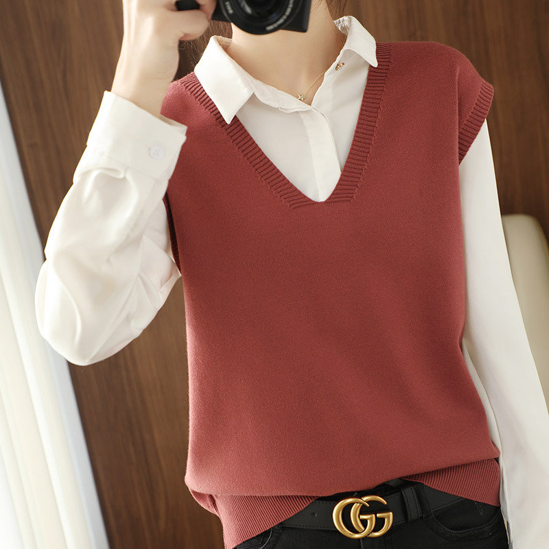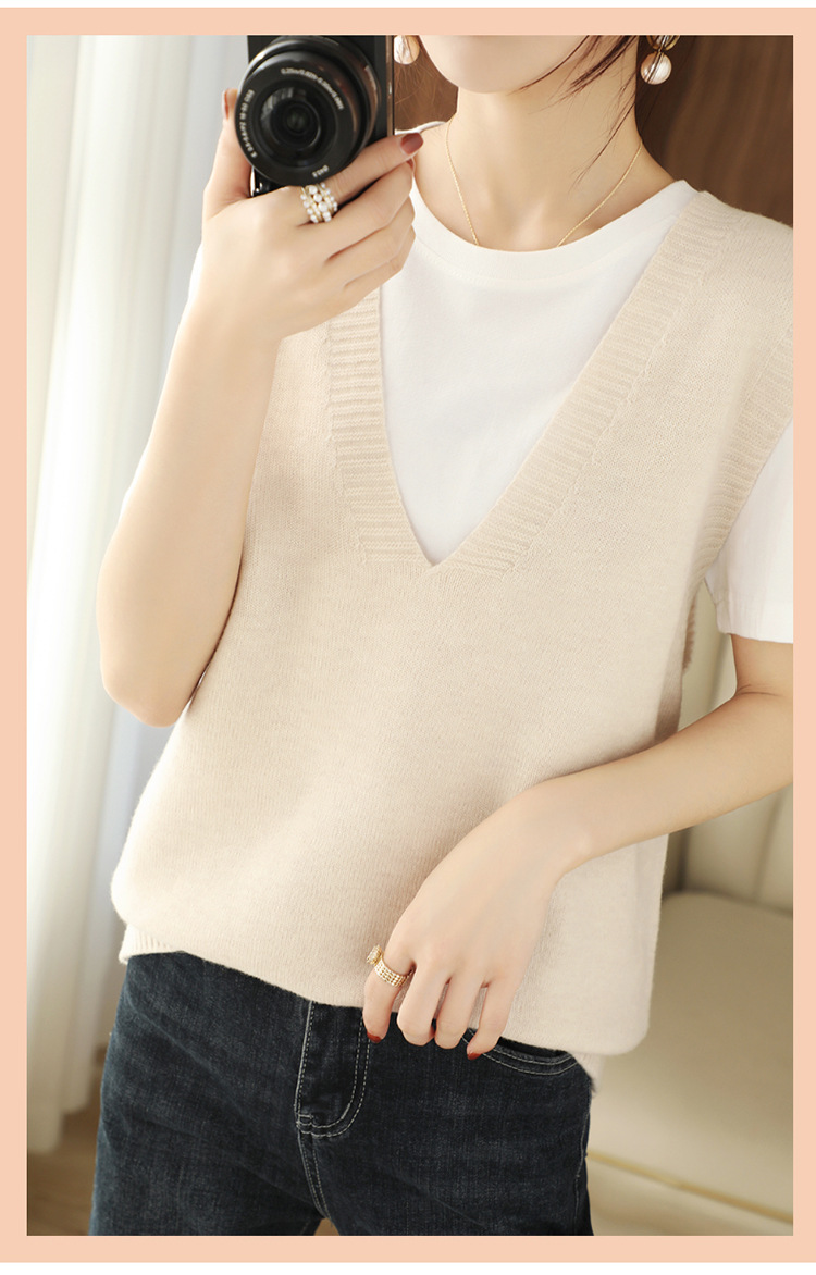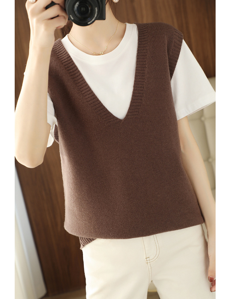 2024 년 초 가을 새로운 스택 울 조끼 니트 조끼 통근 민소매 느슨한 코트 니트 어깨 여성용스토어 가기