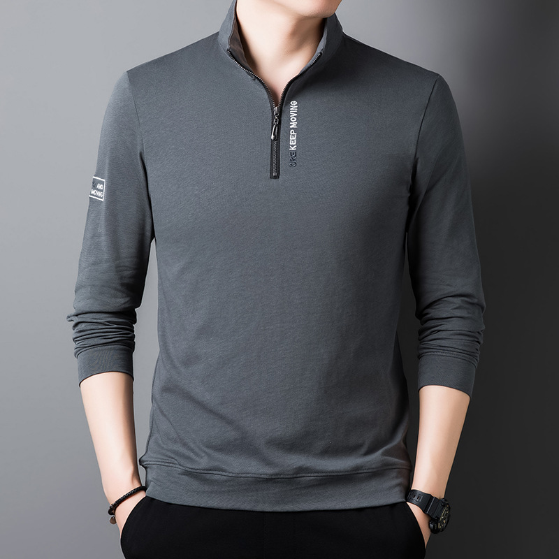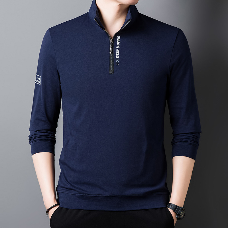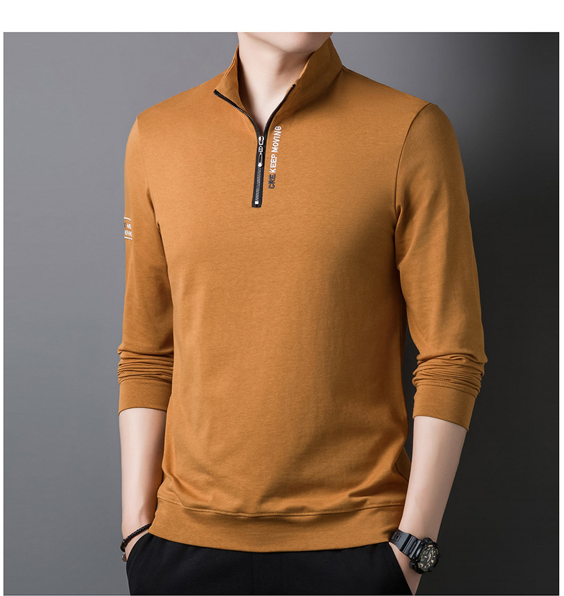 가을과 겨울 새로운 자수 스웨터 두꺼운 반 지퍼 수직 칼라 긴 소매 남성용 따뜻한 패션 캐주얼 탑베이스 셔츠