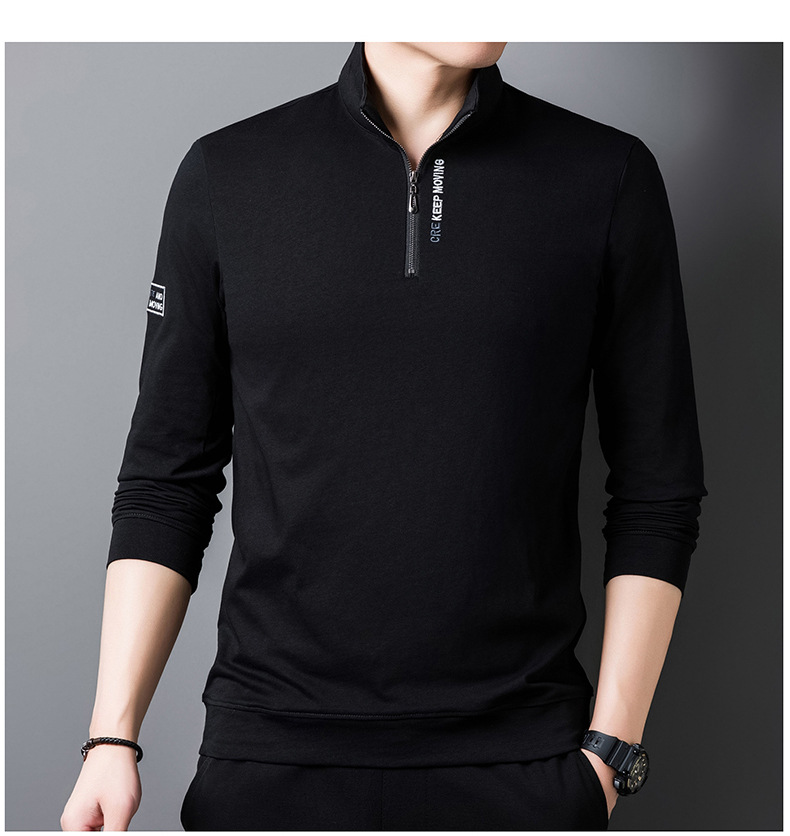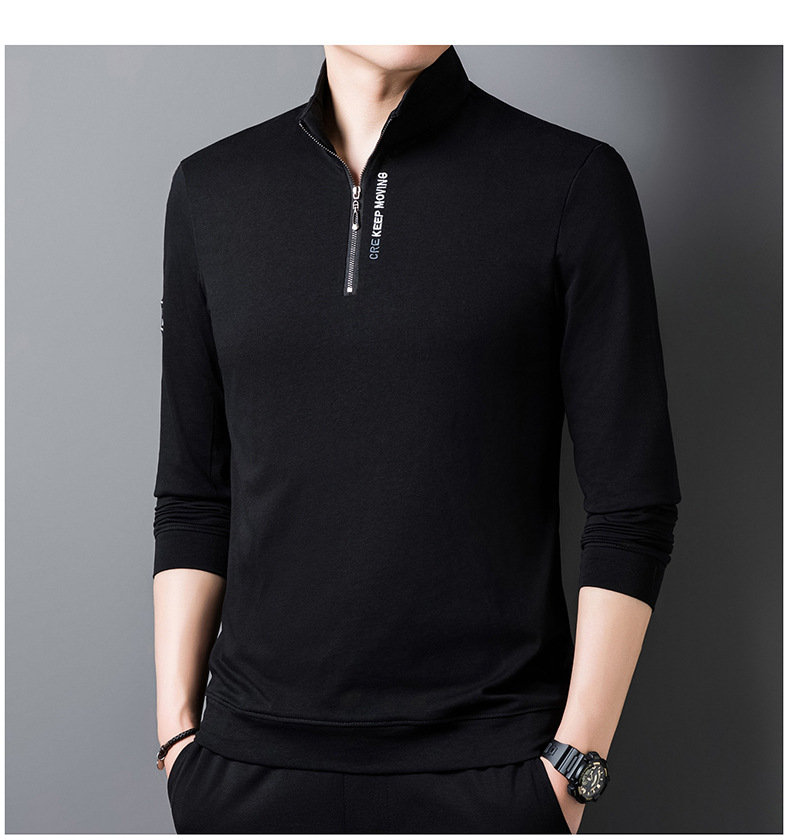 가을과 겨울 새로운 자수 스웨터 두꺼운 반 지퍼 수직 칼라 긴 소매 남성용 따뜻한 패션 캐주얼 탑베이스 셔츠스토어 가기