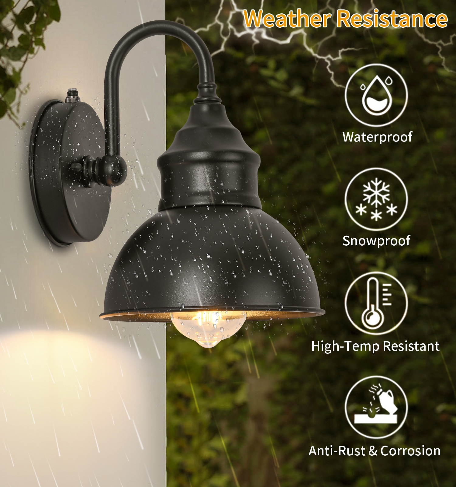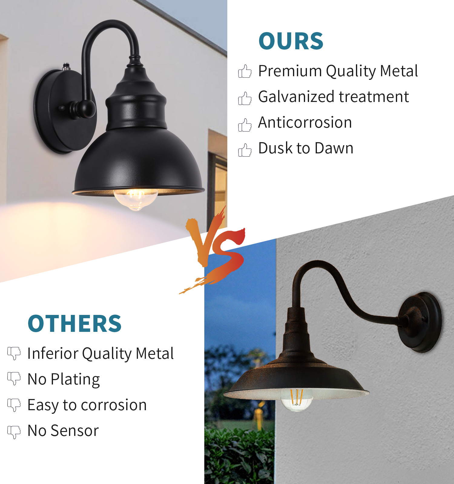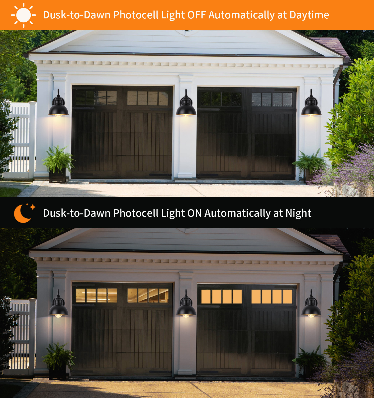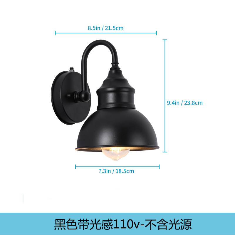 • 광 센서 110v가 있는 검정색 벽 램프 - 광원은 포함되어 있지 않음