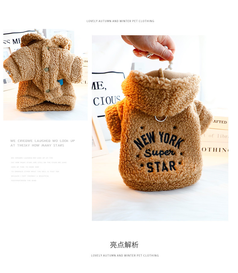 개 옷 가을과 겨울 두꺼운 고양이 공주 스웨트 뉴욕 스타 라이트 코트 작은 개 테디 애완 동물 6249