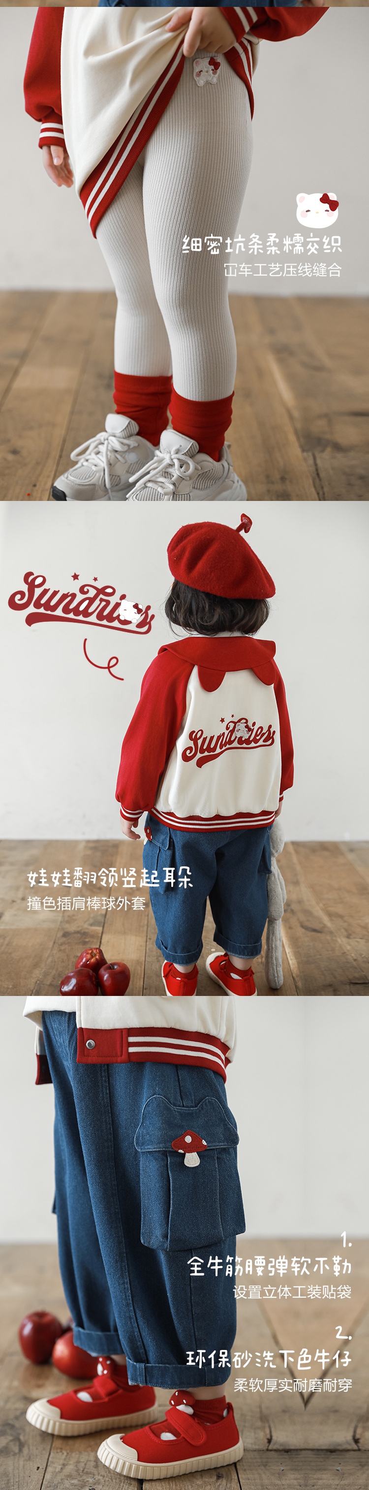 Wuliboyi 여아 고양이 귀 후드 티셔츠 2025 가을 티셔츠 대비 색상 라글란 야구 재킷 바지