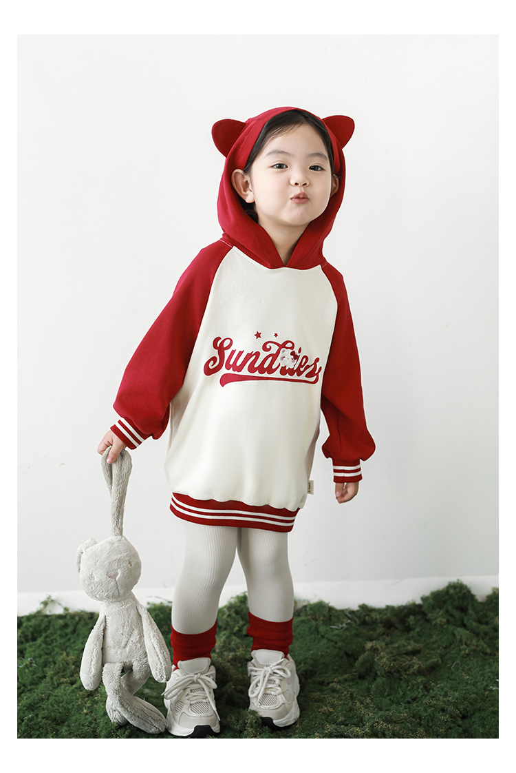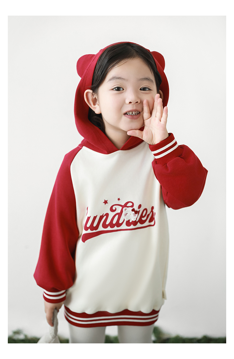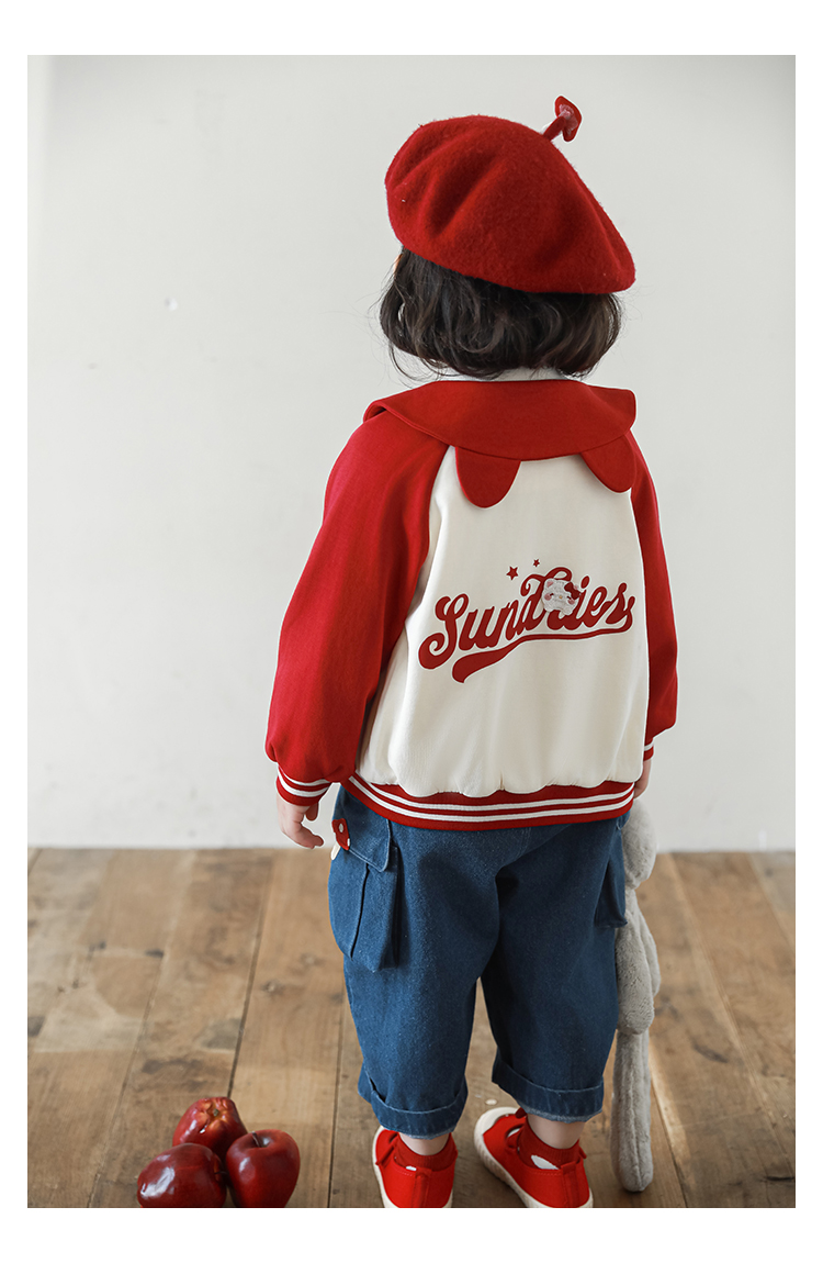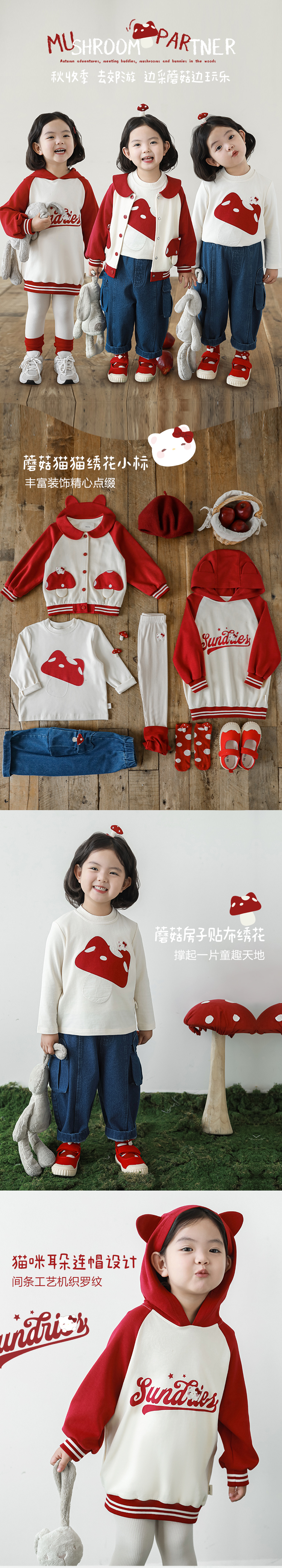 Wuliboyi 여아 고양이 귀 후드 티셔츠 2025 가을 티셔츠 대비 색상 라글란 야구 재킷 바지스토어 가기