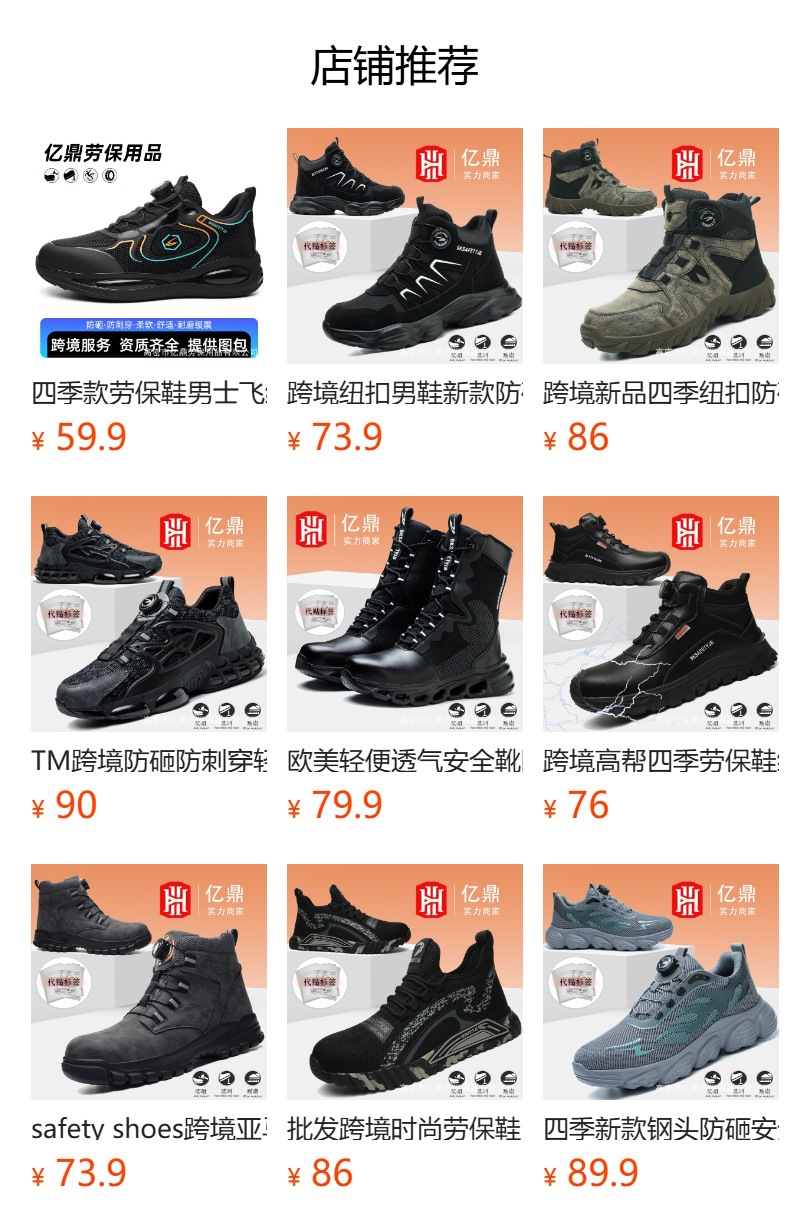 안전화 국경 아마존 도매 사계절 노동 보호 신발 파손 방지 및 펑크 방지 편안한 보호 안전화스토어 가기