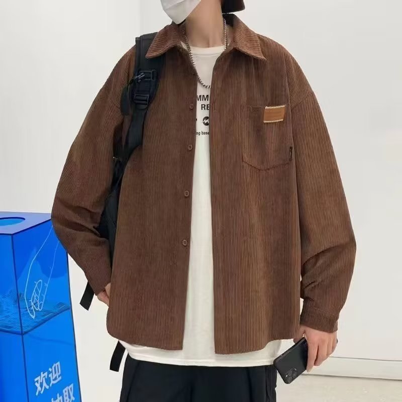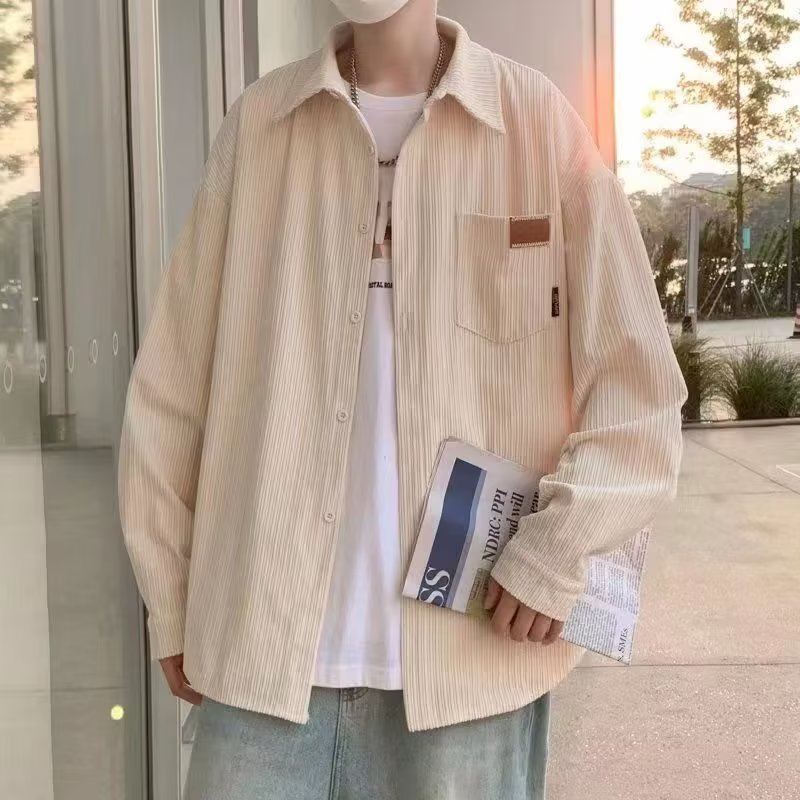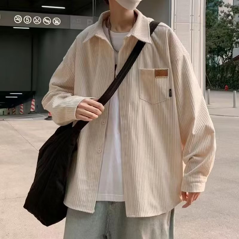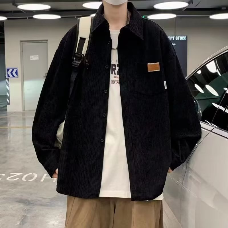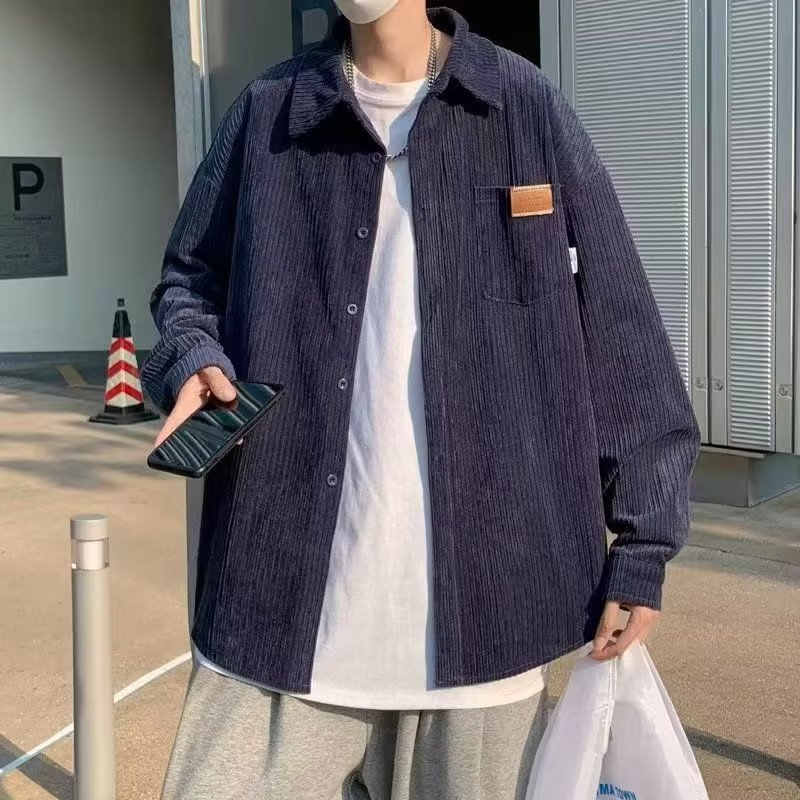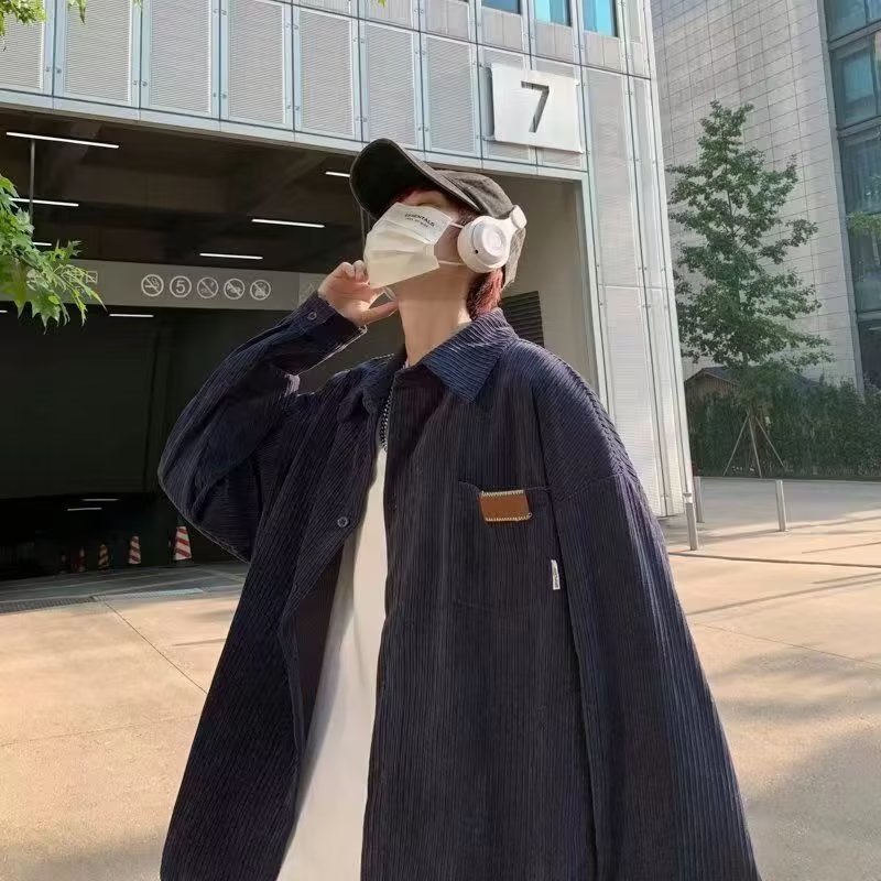 일본 도시 소년 실루엣 코트 봄과 가을 하이 엔드 느낌 러피 잘 생긴 셔츠 3 코듀로이 긴 소매 셔츠 남자의 가을스토어 가기