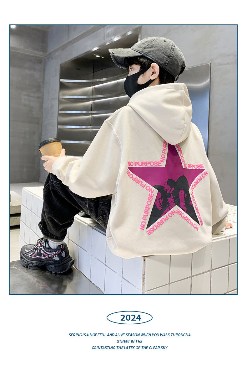 아동복 소년 봄과 가을 크로스 후드 땀 2024 새로운 스타일 중대형 어린이 봄과 가을 스타일 소년 서양식
