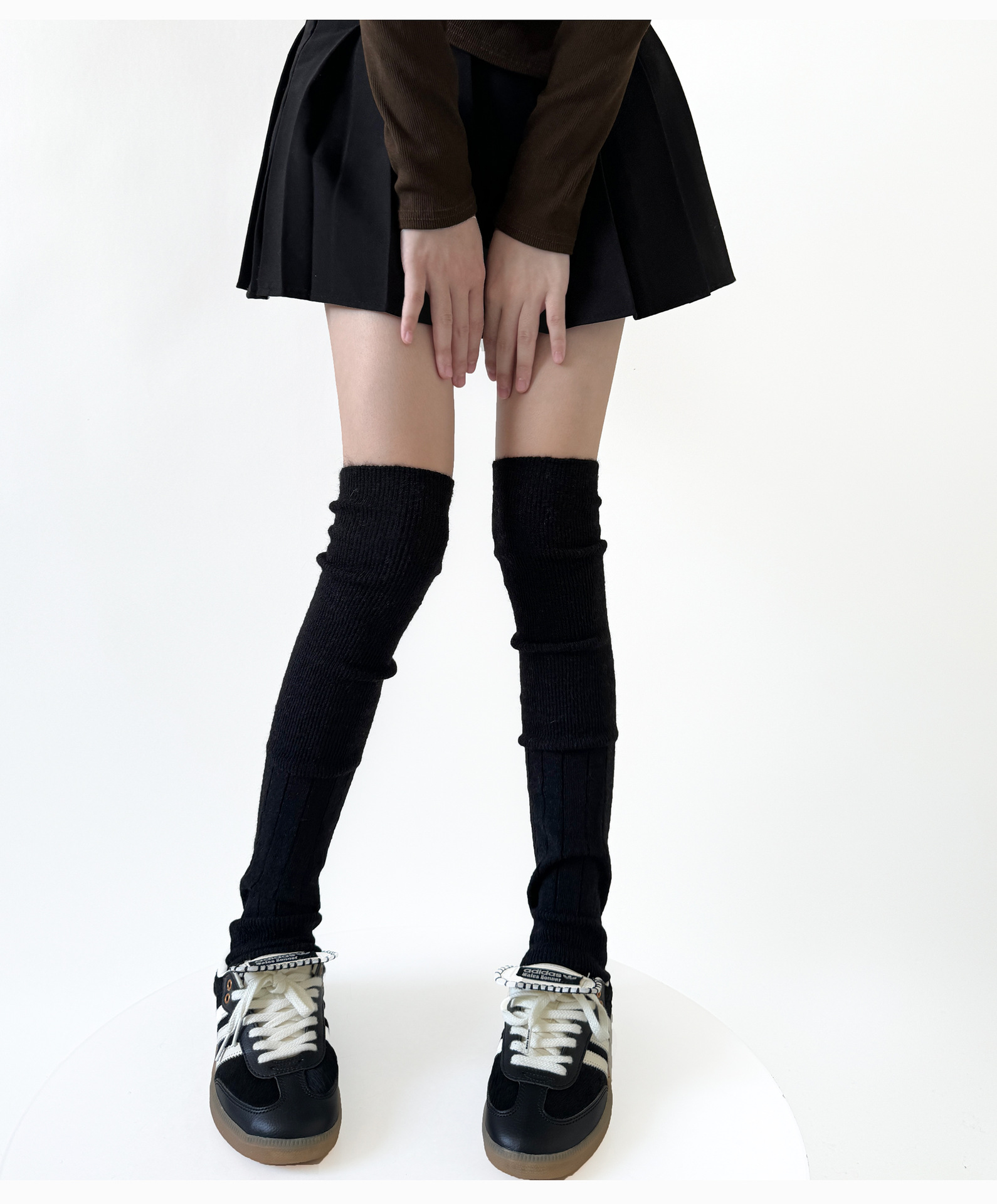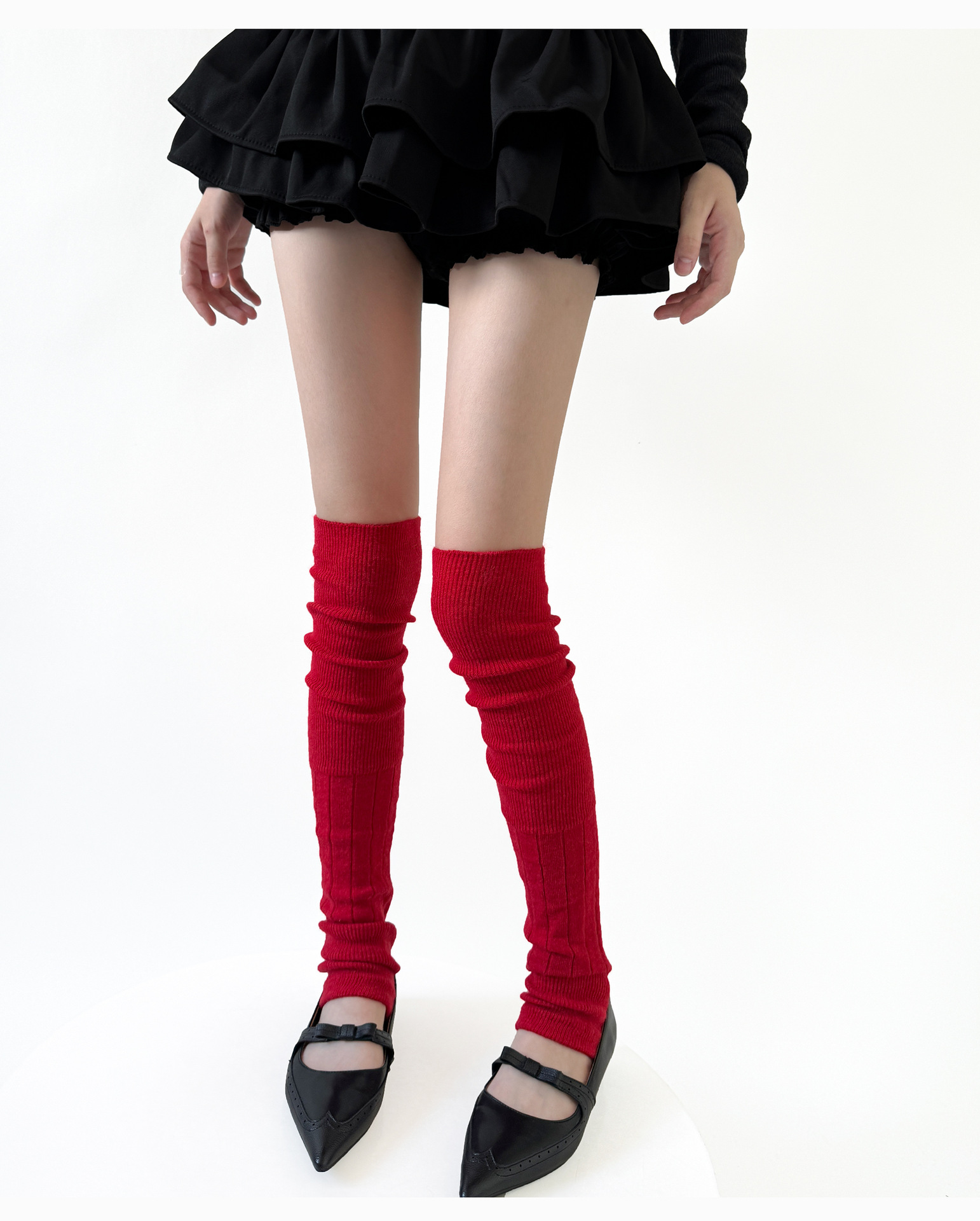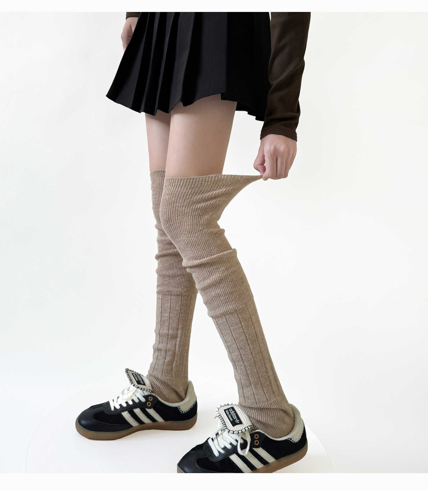 가을과 겨울 새로운 도착 넓은 발 양말 바느질 고층 무릎 패드 다리 커버 따뜻한 슬리밍 솔리드 컬러 더미 수직 패턴 여성용 무릎 위 양말