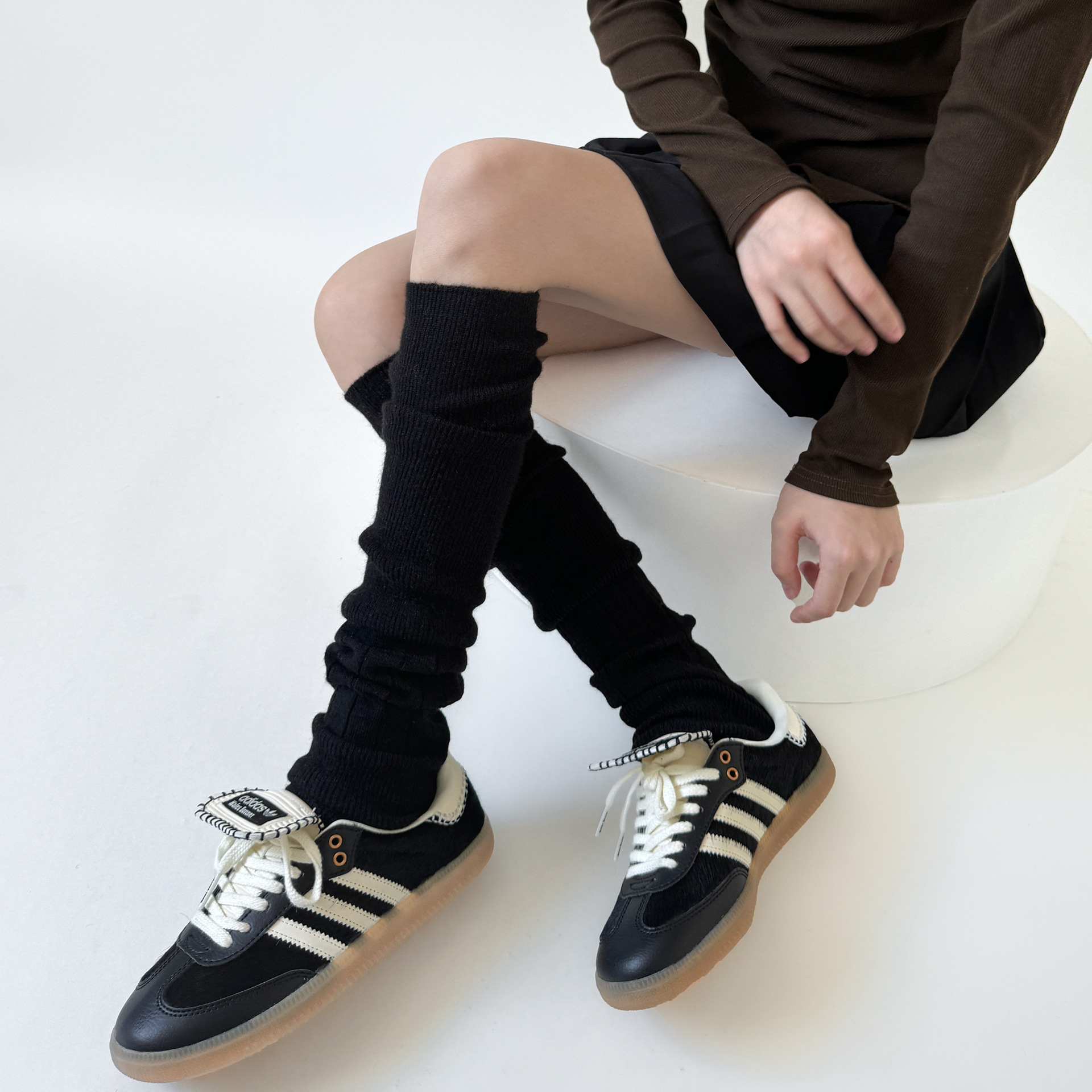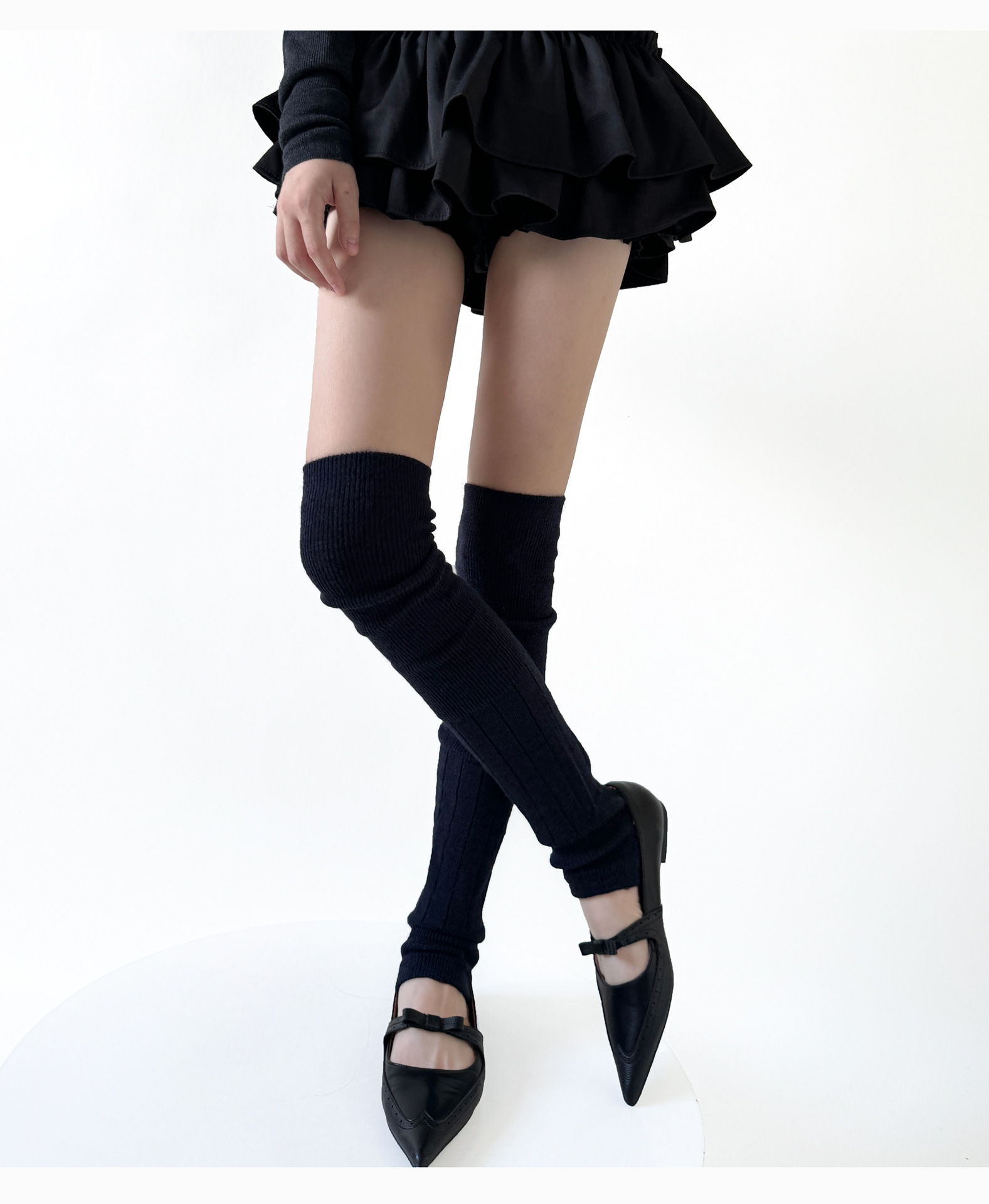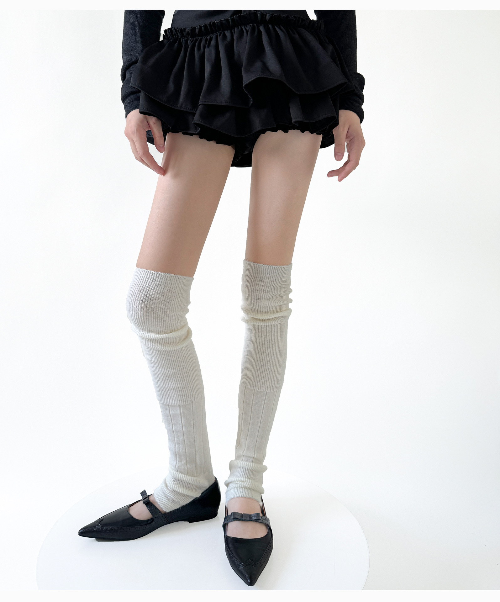 가을과 겨울 새로운 도착 넓은 발 양말 바느질 고층 무릎 패드 다리 커버 따뜻한 슬리밍 솔리드 컬러 더미 수직 패턴 여성용 무릎 위 양말