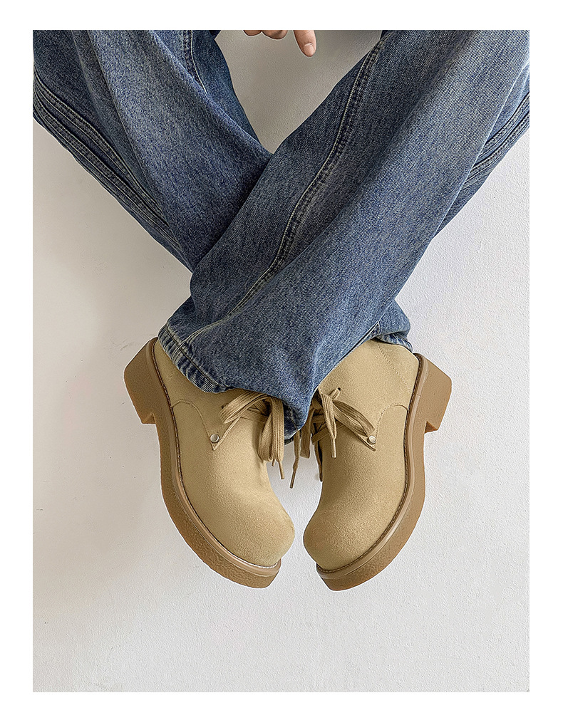 영국 마틴 부츠 2024 가을 새로운 일본 빈티지 암소 벨벳 빅 헤드 더비 신발 남성용 작업복 짧은 부츠