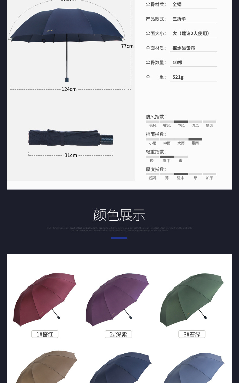 파라다이스 우산 초대형 우산 3 인 접이식 초대형 강화 수동 방풍 및 방비 우산 남녀 학생용스토어 가기