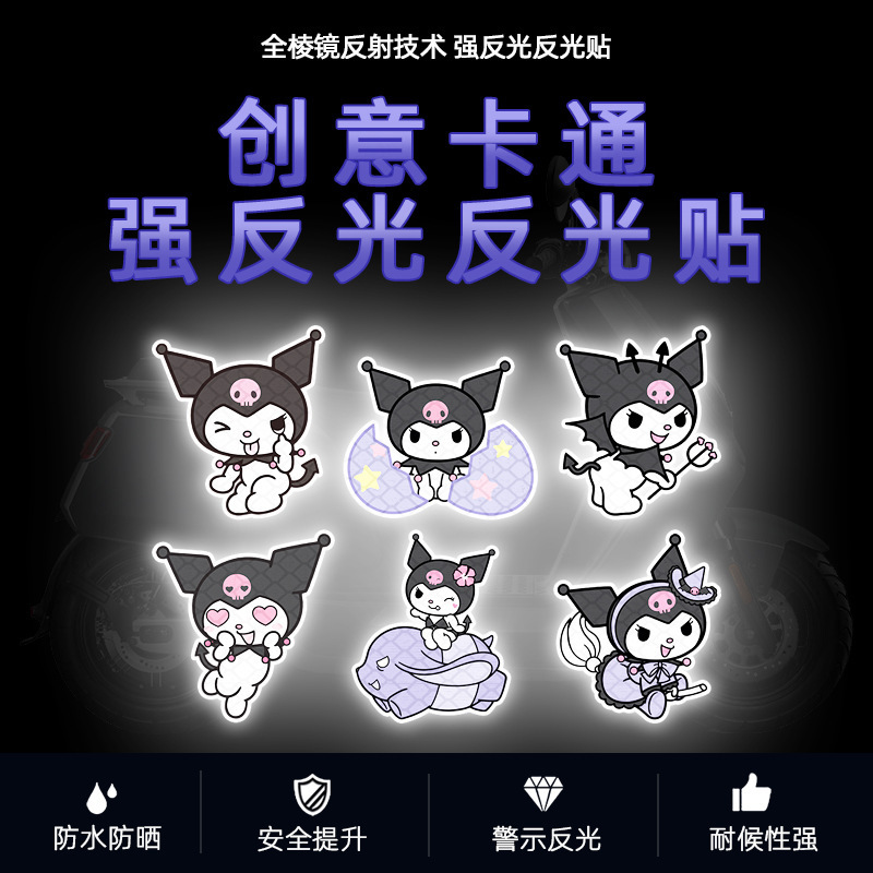 만화 Kulomi 전기 자동차 반사 스티커 귀여운 재미있는 자동차 커버 작은 스크래치 장식 스티커 헬멧 반사 스티커스토어 가기