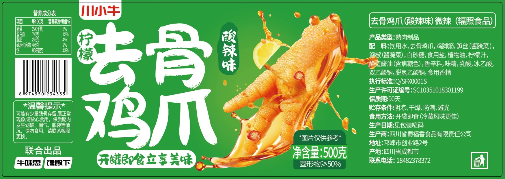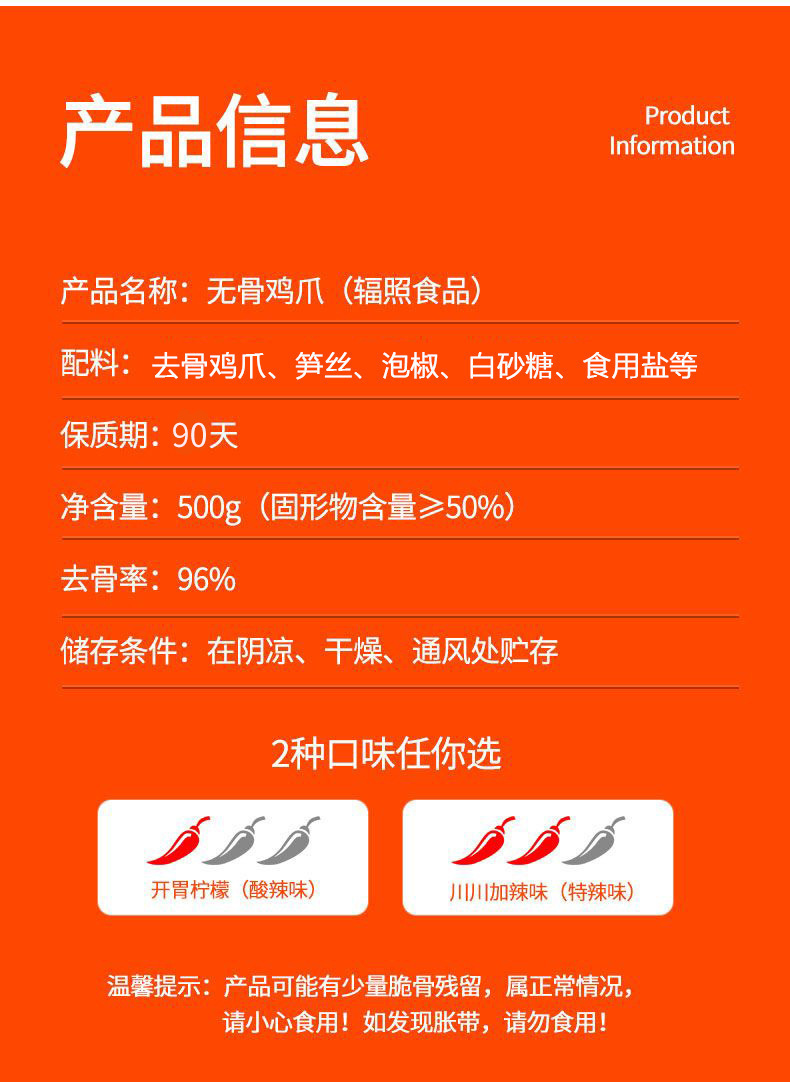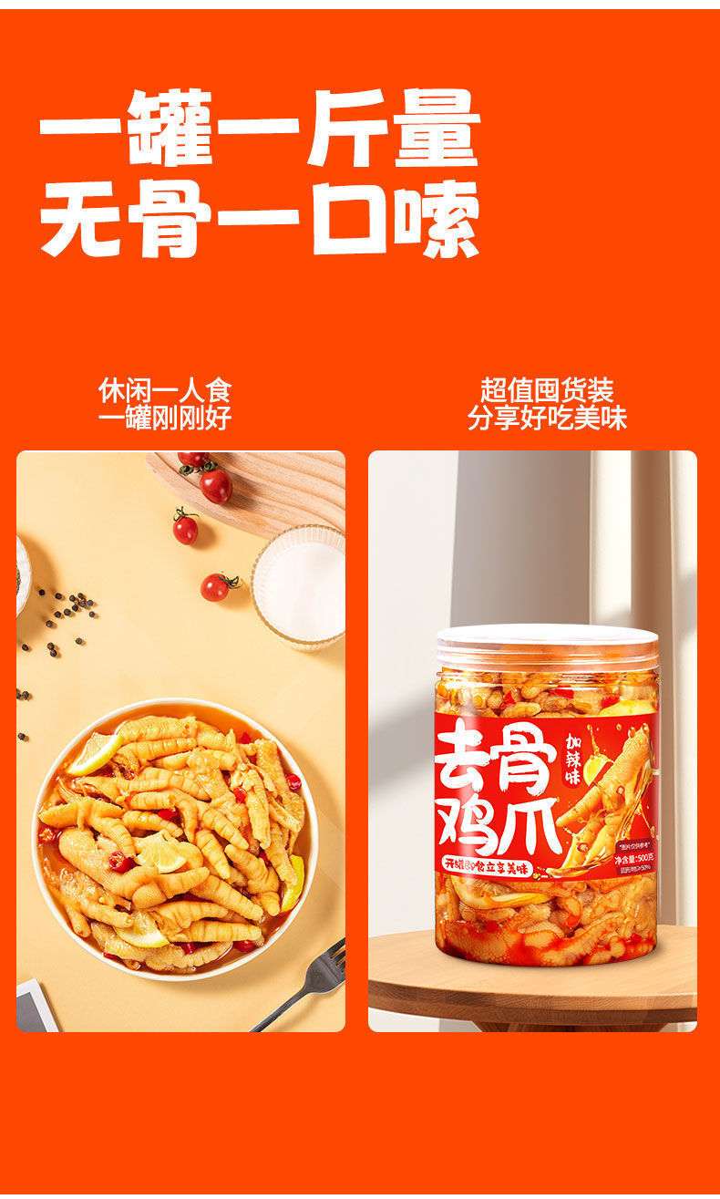 레몬맛 매콤한 무뼈 닭발 500g 매콤한 닭발 매운 닭고기 간식 사천 간식 도매