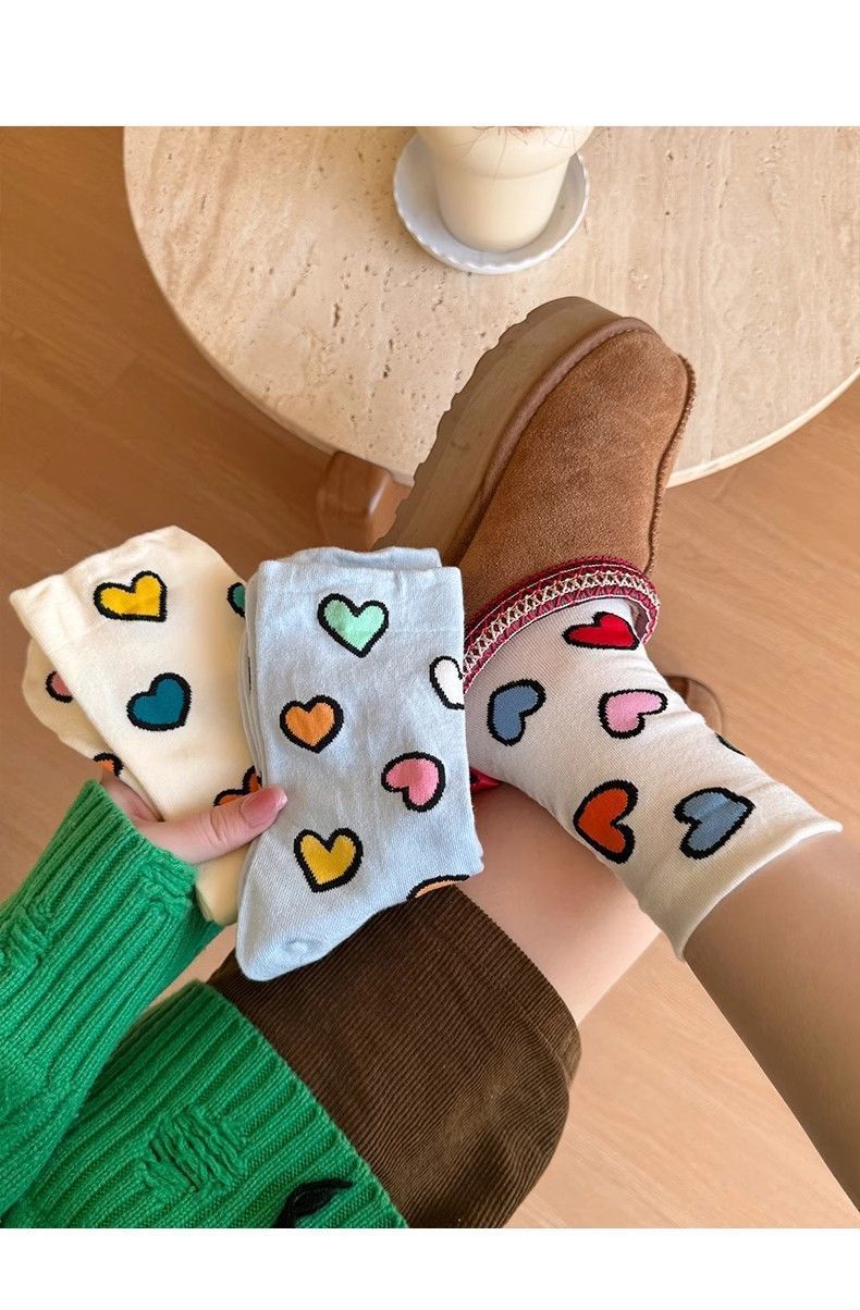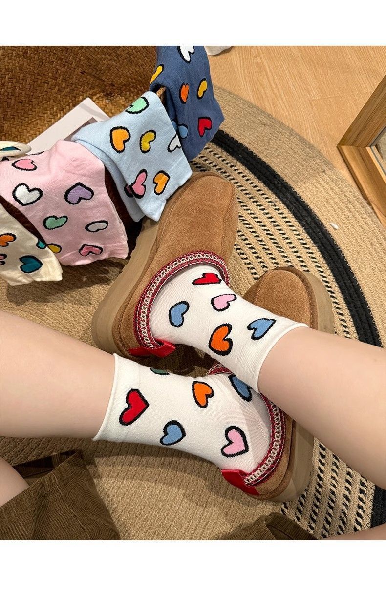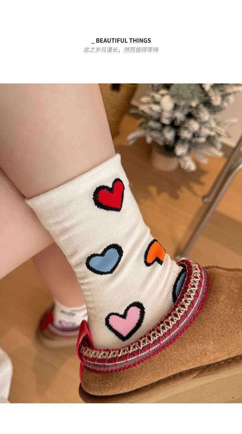 사랑의 양말 어린이 중간 길이 양말 달 양말 여름 얇은 스타킹 유행 도파민 착용 귀여운