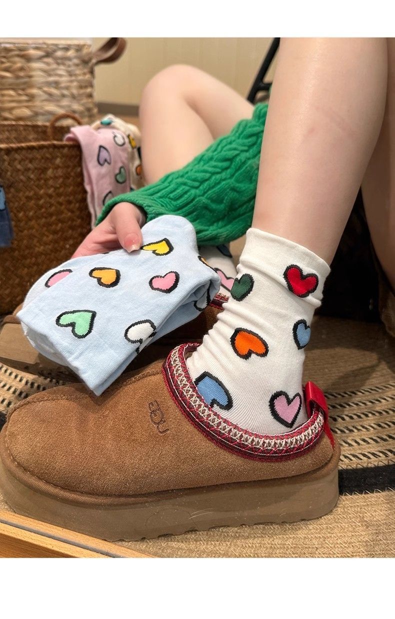사랑의 양말 어린이 중간 길이 양말 달 양말 여름 얇은 스타킹 유행 도파민 착용 귀여운스토어 가기