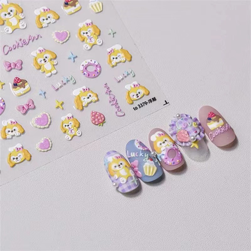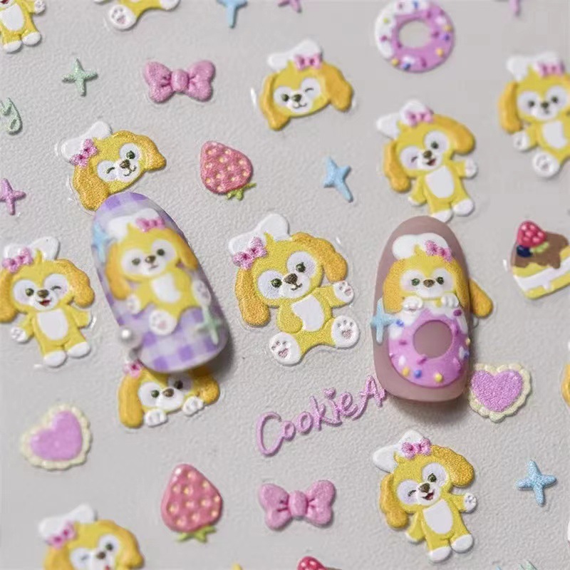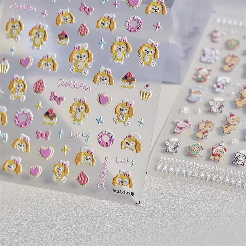 귀여운 만화 네일 아트 평면 스티커 tomoni 평면 일본 접착제 3d 그물 빨간색 새 네일 스티커 장식
