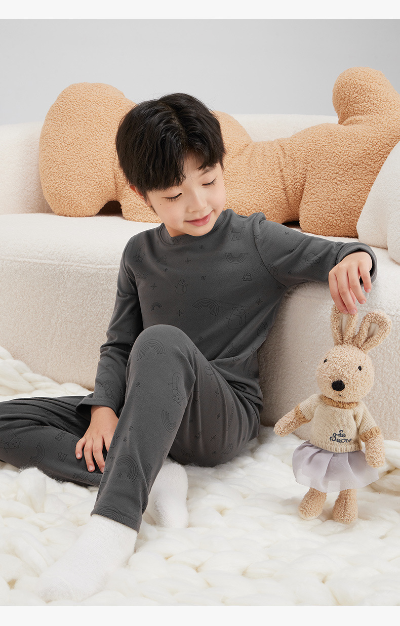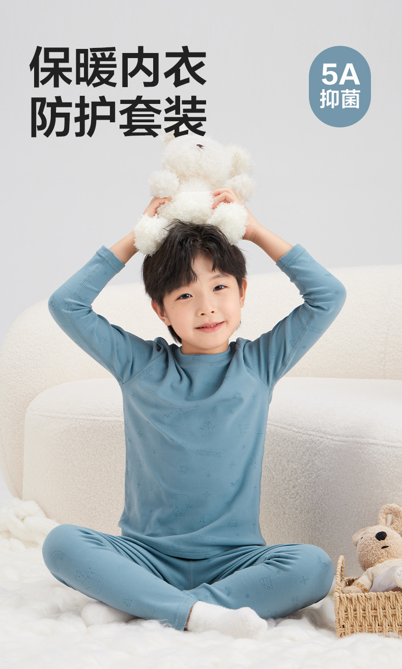 Zuoxi 아동복 아동 가을 옷과 긴 바지 소년 보온 속옷 세트 두꺼운 가을, 겨울 5A 항균 잠옷 가정 의류스토어 가기