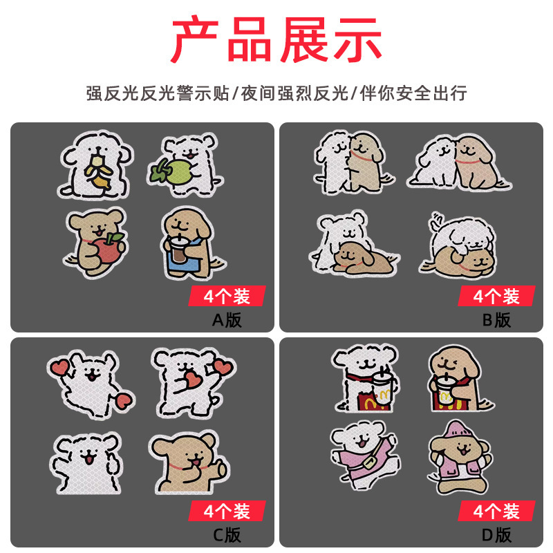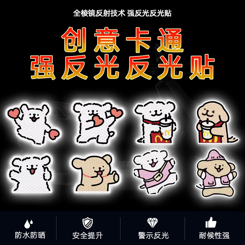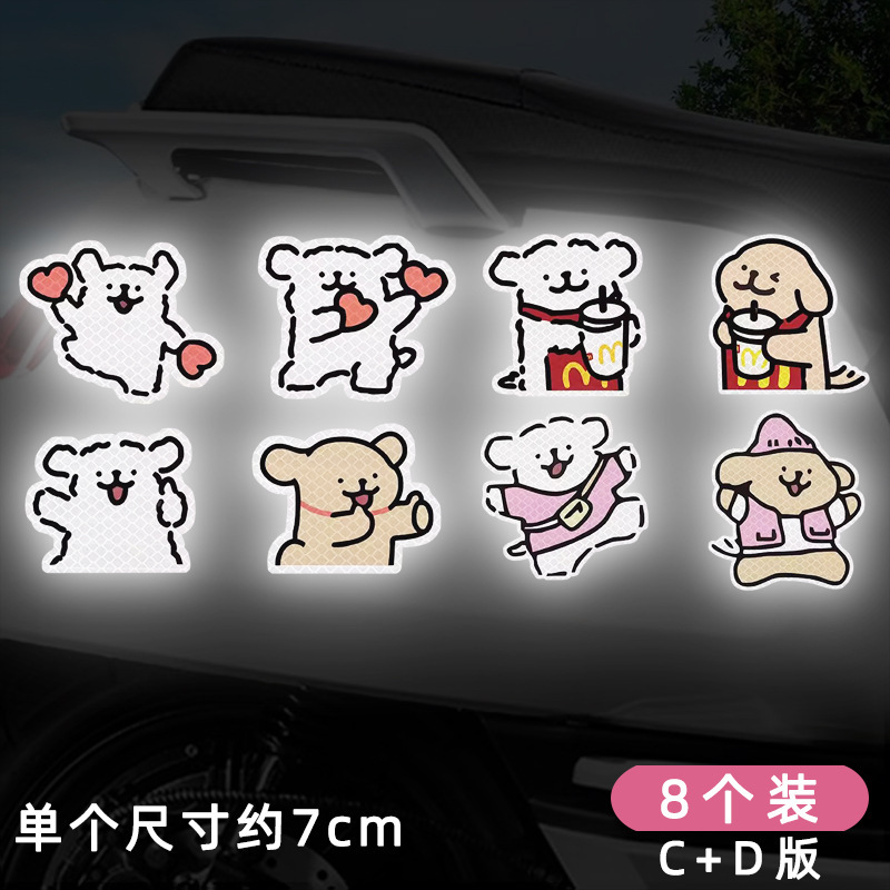 • [강한 반사] 라인 강아지 반사 스티커 C+D 버전 [단일 사이즈 약 7cm]