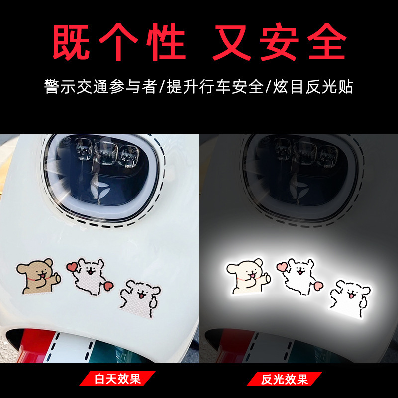 전기 자동차 장식 스티커 라인 강아지 만화 창조적 인 성격 헬멧 스티커 야디 엠마 칼 반사 경고스토어 가기