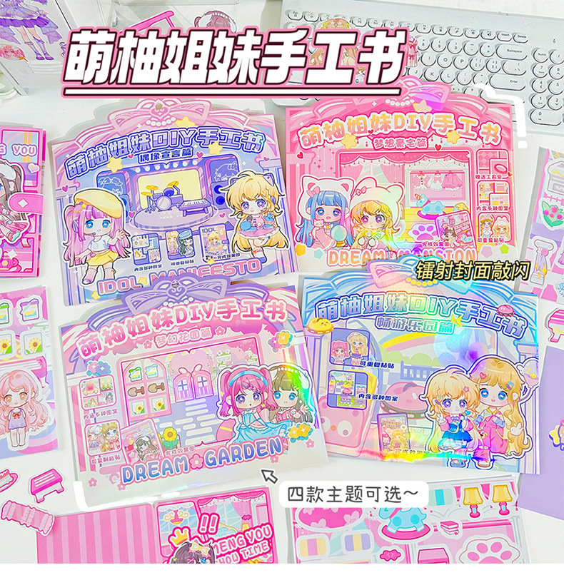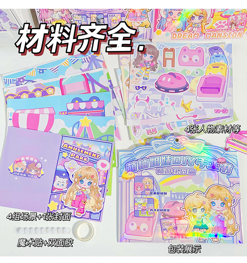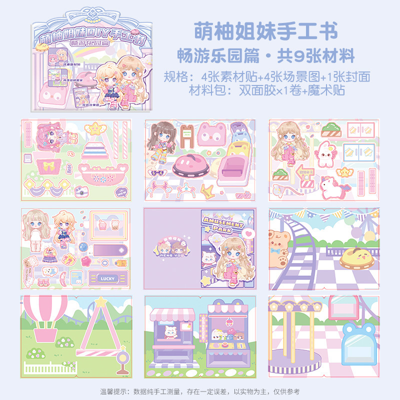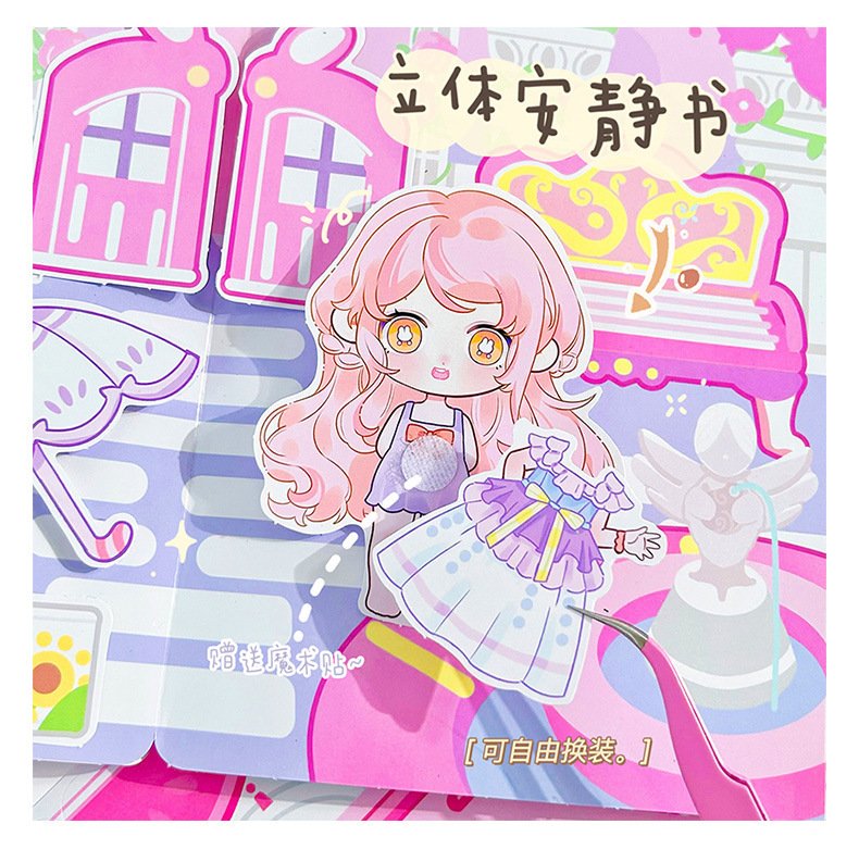귀여운 Pomelo 자매 DIY 장난감 수제 책 어린이 원피스 스티커 책 소녀 놀이 홈 컷-무료 조용한 책스토어 가기