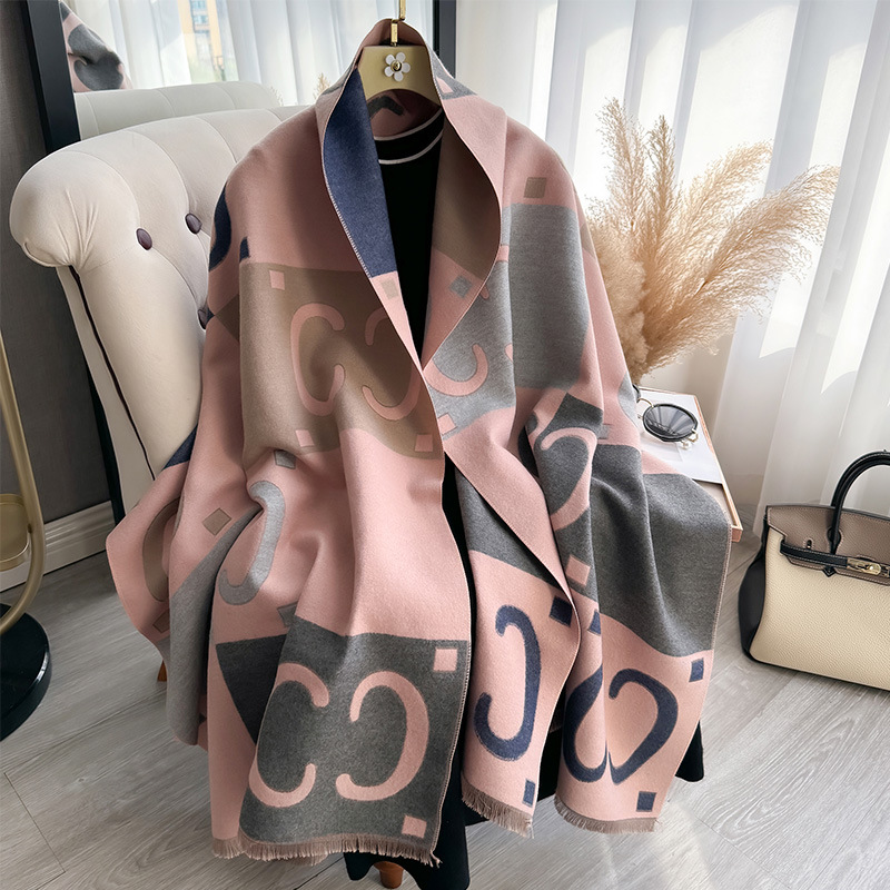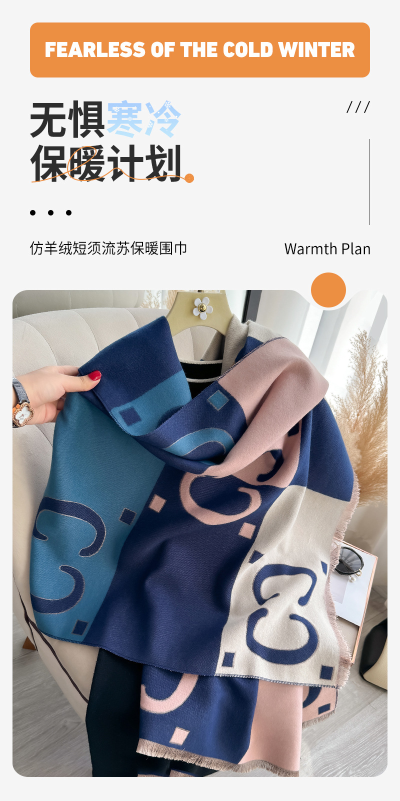 유럽과 미국의 패션 컬러 매칭 레터 캐시미어 스카프 가을과 겨울 올매치 두꺼운 술 목도리 따뜻한 스카프 고급 감각스토어 가기