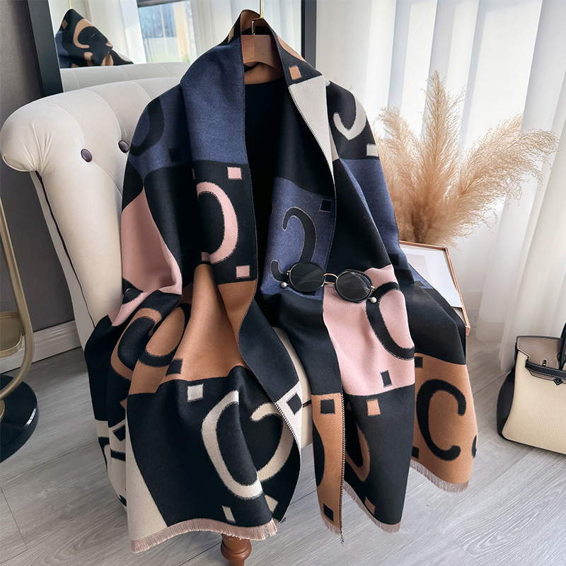 유럽과 미국의 패션 컬러 매칭 레터 캐시미어 스카프 가을과 겨울 올매치 두꺼운 술 목도리 따뜻한 스카프 고급 감각