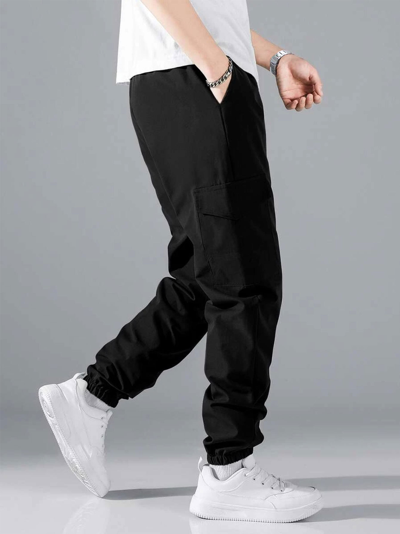 가을 2024 새로운 캐주얼 솔리드 컬러 멀티 포켓 크레인 바지 드래그 스트링 바지 전술 바지스토어 가기
