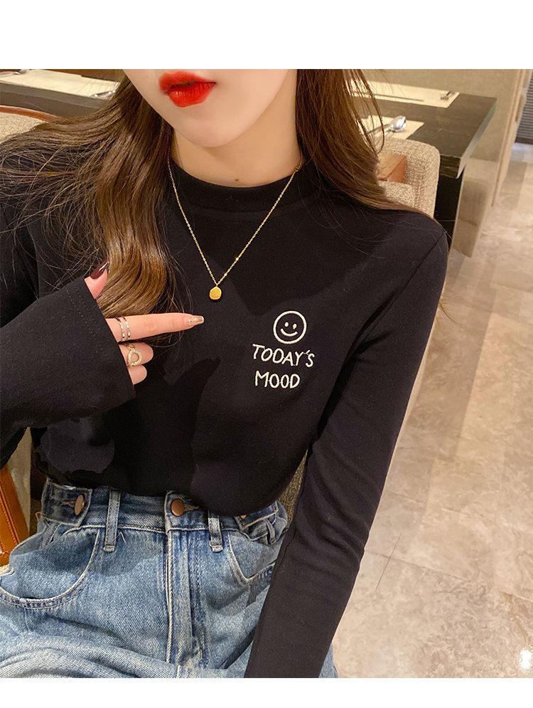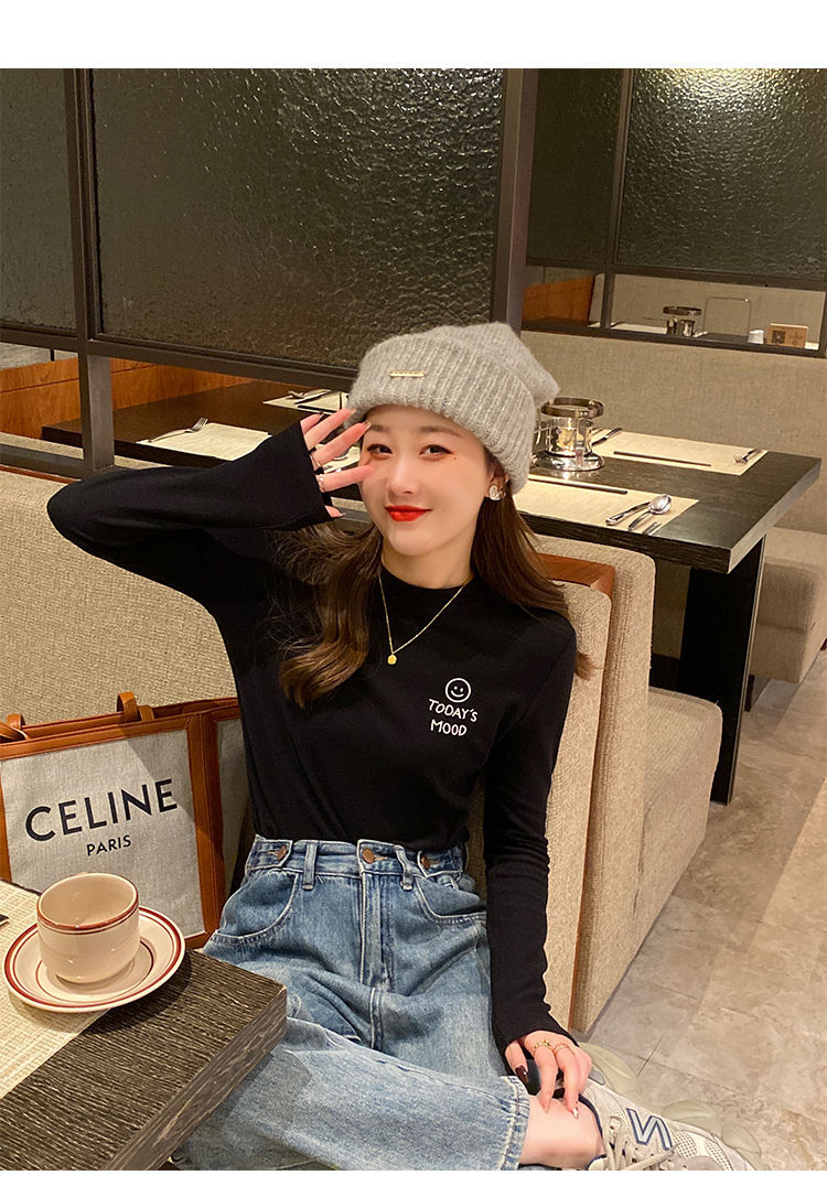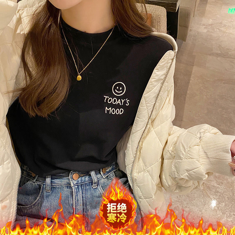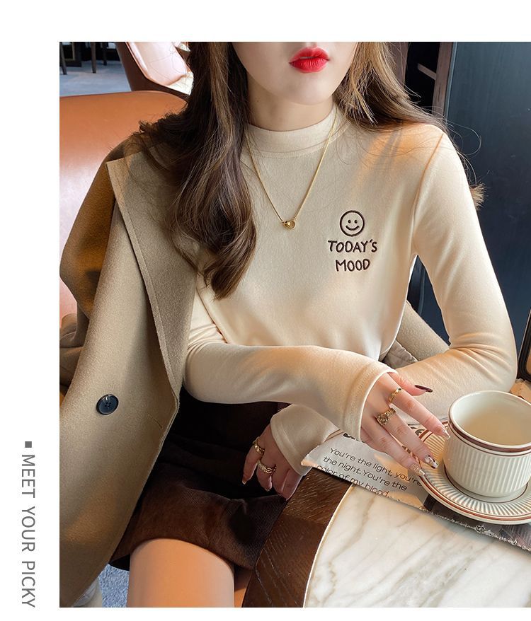 블랙 스레드 양털 세미 하이 칼라 베이스 셔츠 여성 내부 봄 가을 겨울 2024 새로운 스타일 타이트한 긴팔 티셔츠스토어 가기