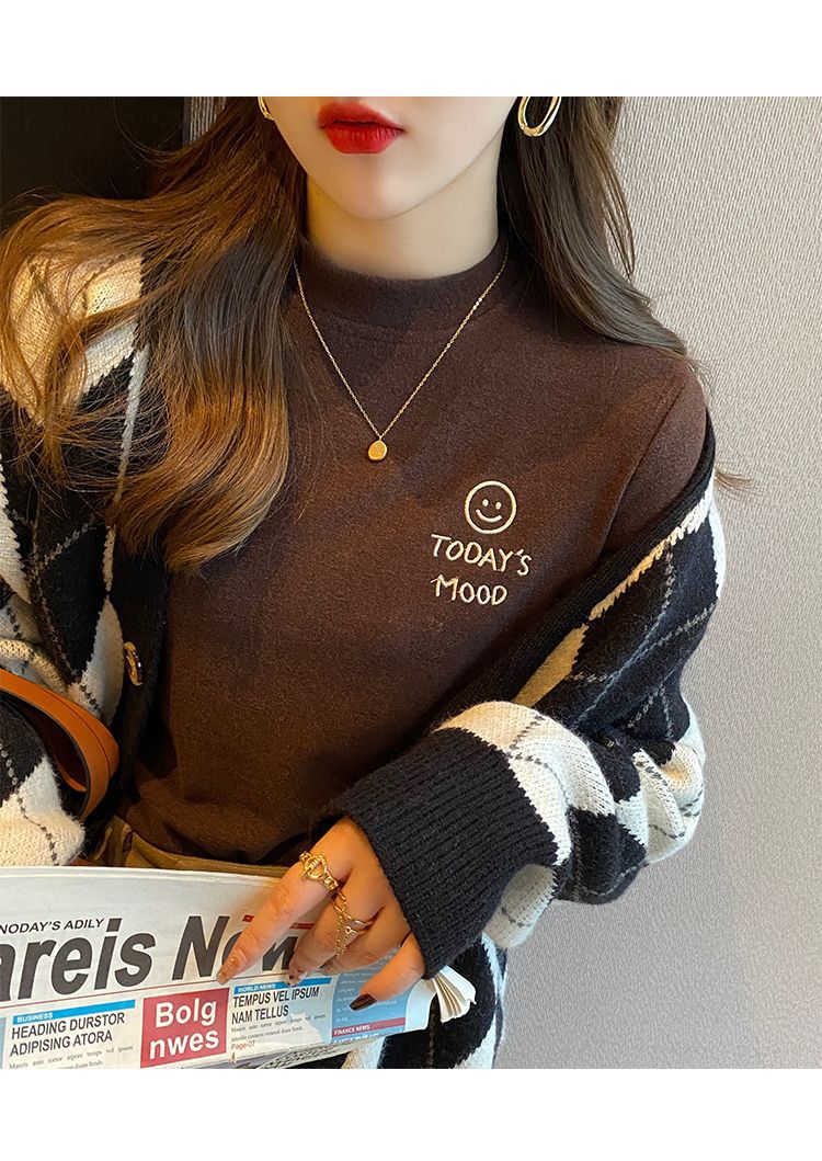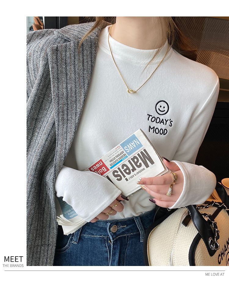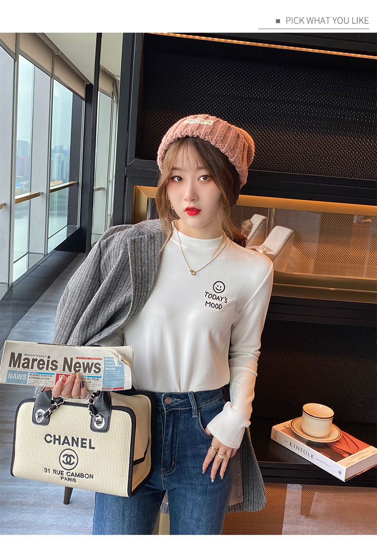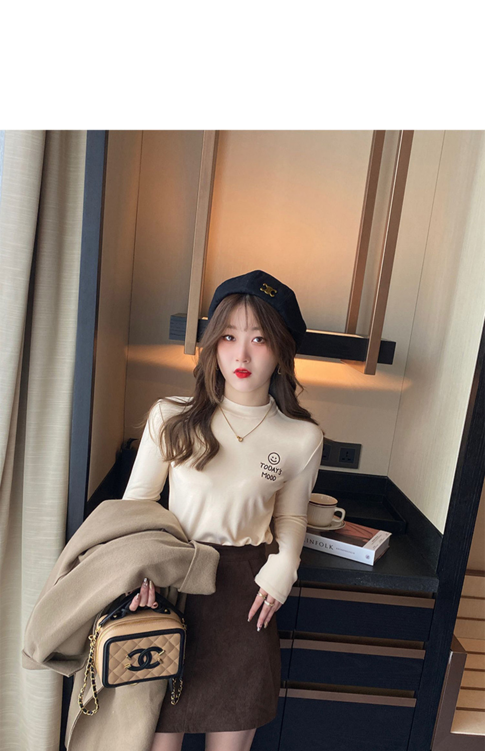 블랙 스레드 양털 세미 하이 칼라 베이스 셔츠 여성 내부 봄 가을 겨울 2024 새로운 스타일 타이트한 긴팔 티셔츠스토어 가기