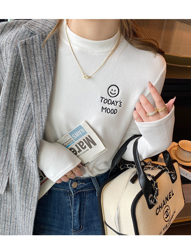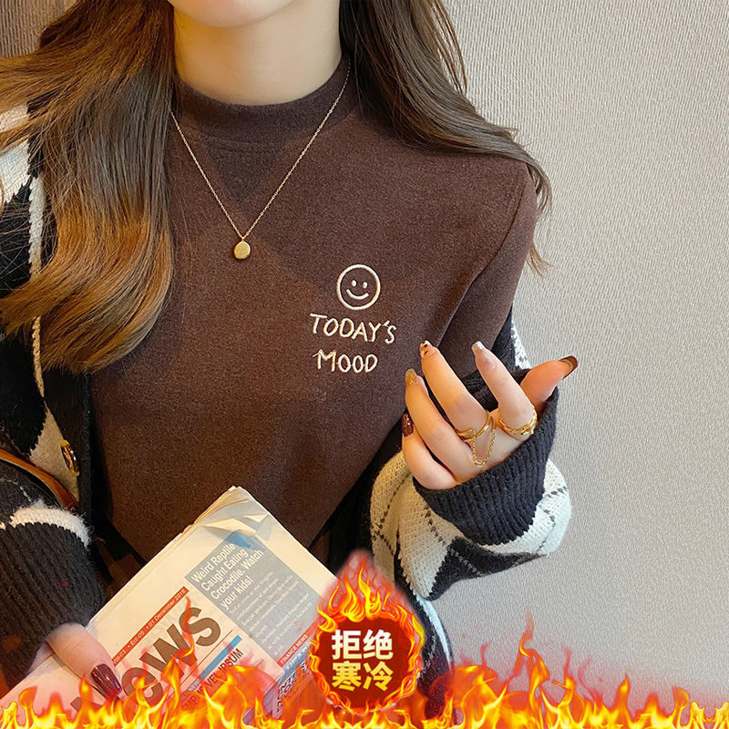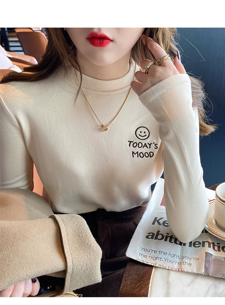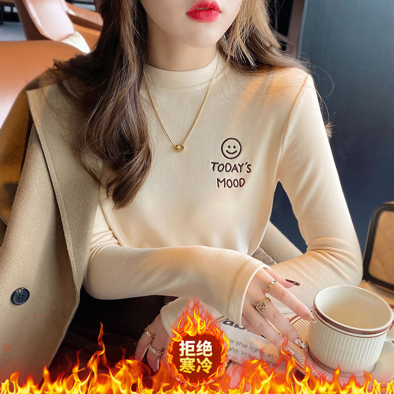 블랙 스레드 양털 세미 하이 칼라 베이스 셔츠 여성 내부 봄 가을 겨울 2024 새로운 스타일 타이트한 긴팔 티셔츠