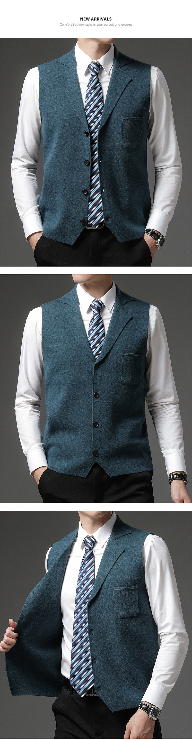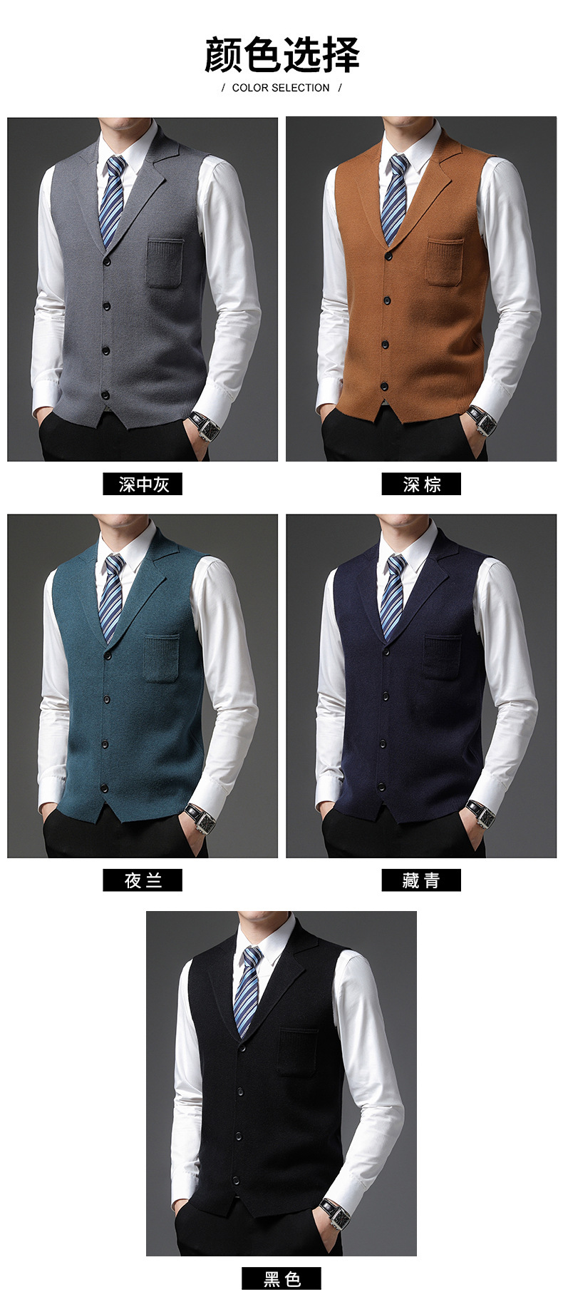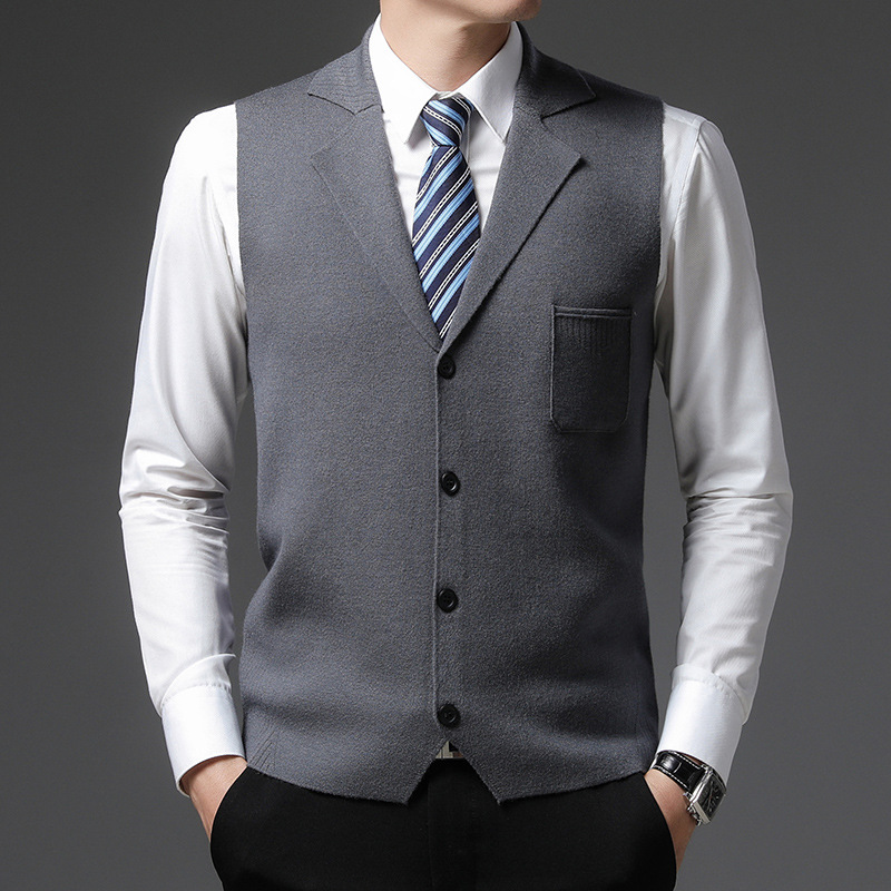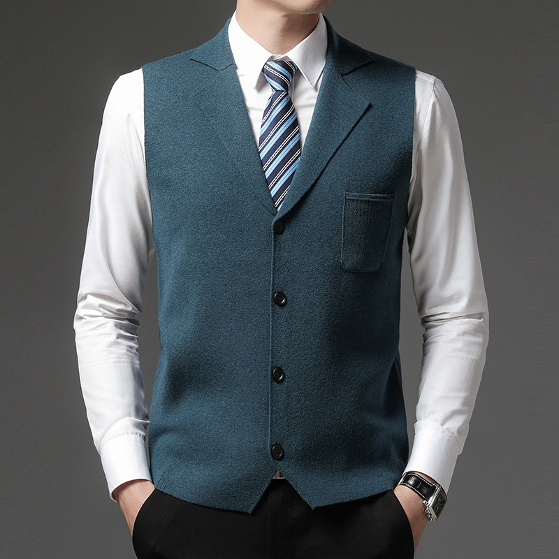 겨울 니트 조끼 남자의 두꺼운 양모 양복 조끼 세트 칼라 민소매 스웨터 가을과 겨울 스웨터 말 클립 아빠 복장스토어 가기