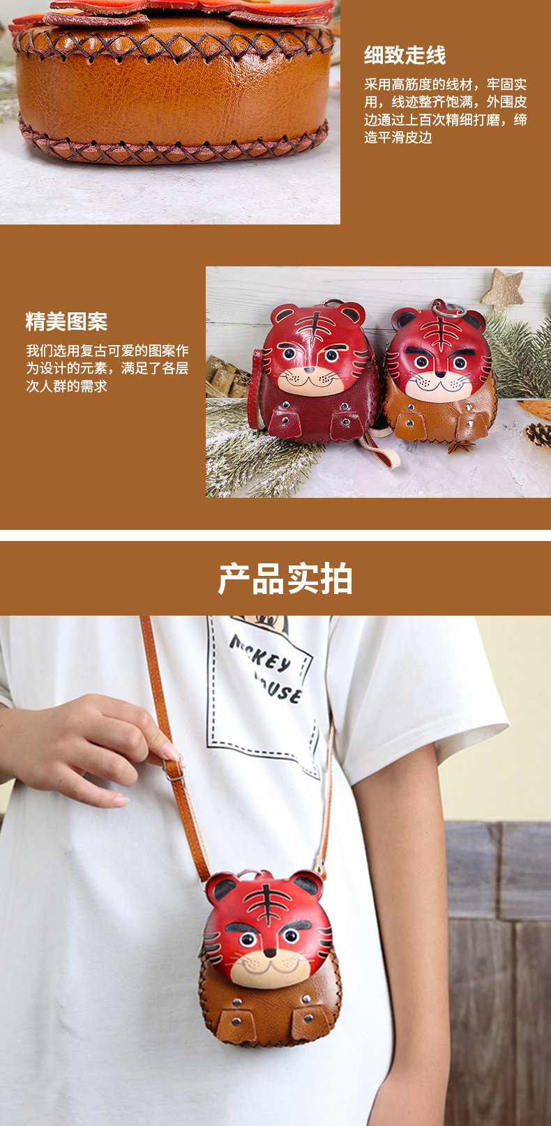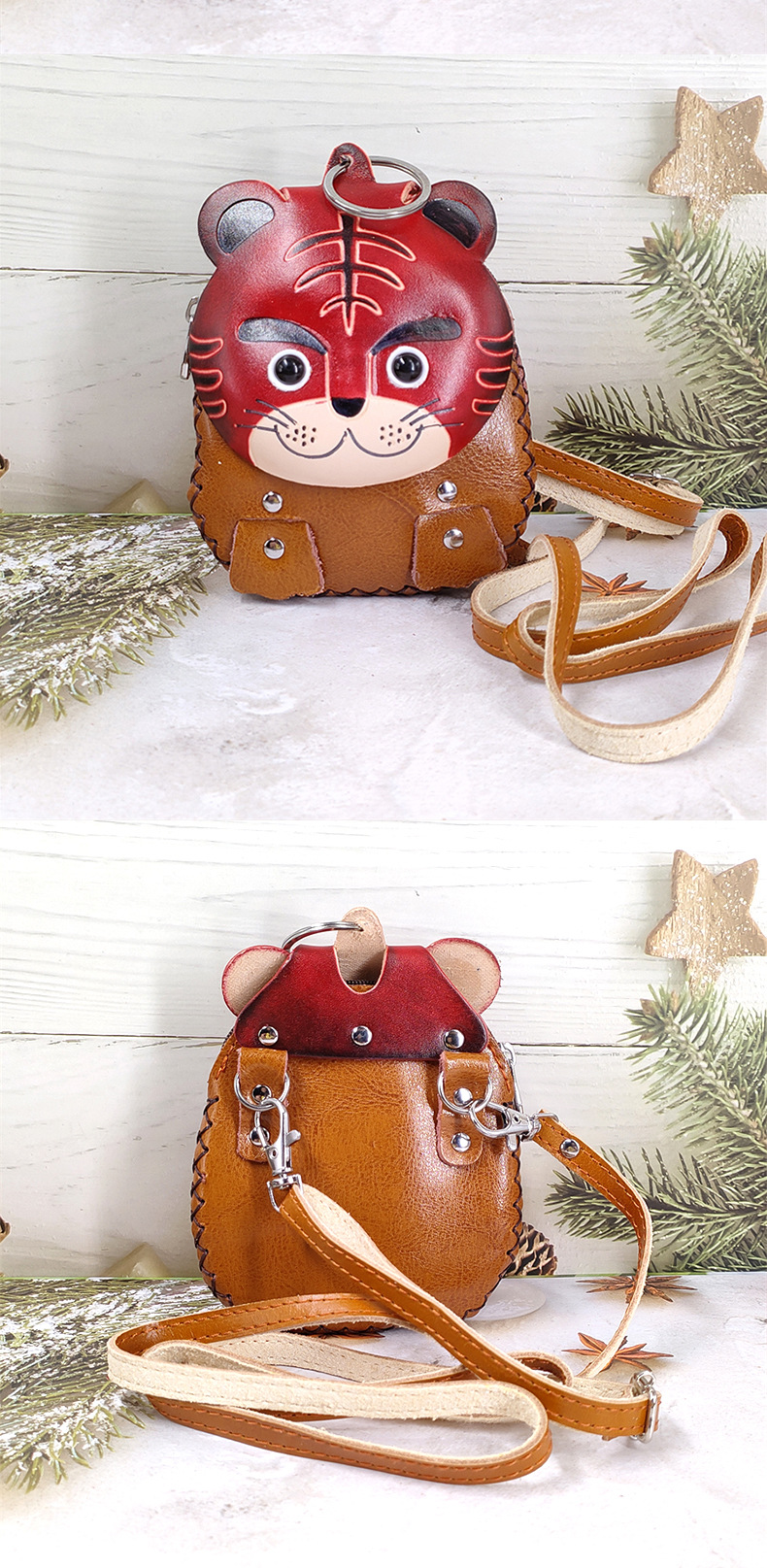 诚e赊零钱包斜挎款老虎卡通生肖钥匙包零钱卡片儿童树膏皮小背包