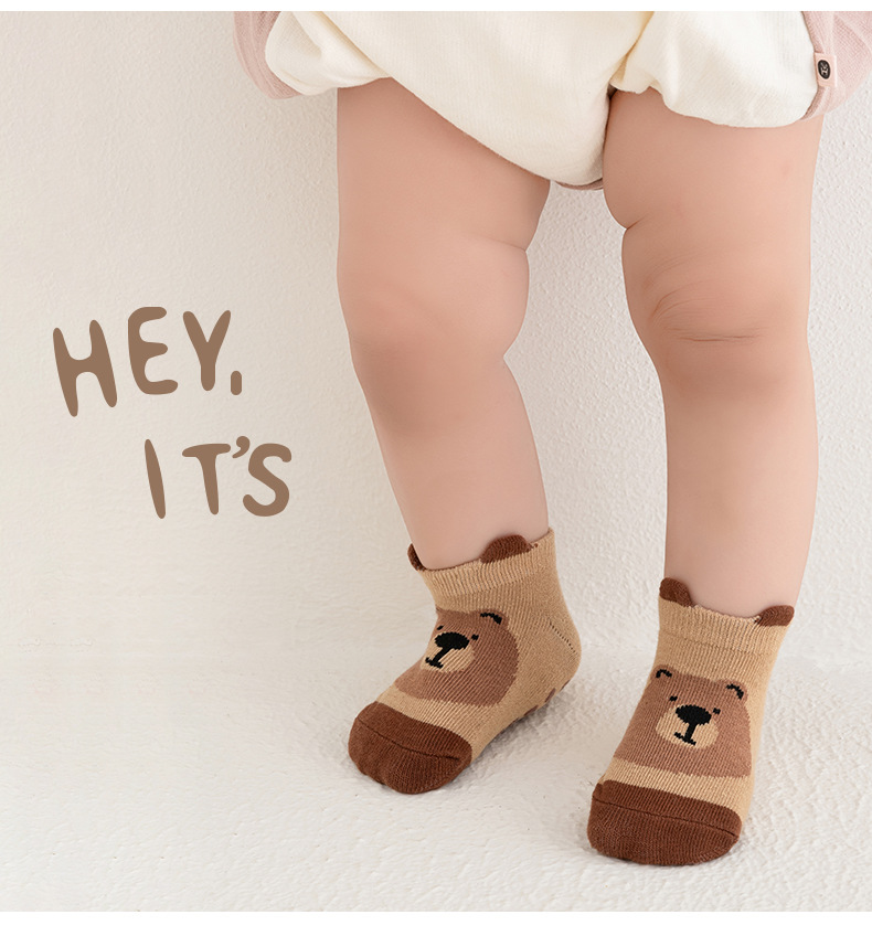 24 가을과 겨울 새로운 바닥 양말 빗질 면화 미끄럼 방지 분배 아기 양말 부드러운 피부 친화적 인 만화 동물 작은 귀 양말스토어 가기