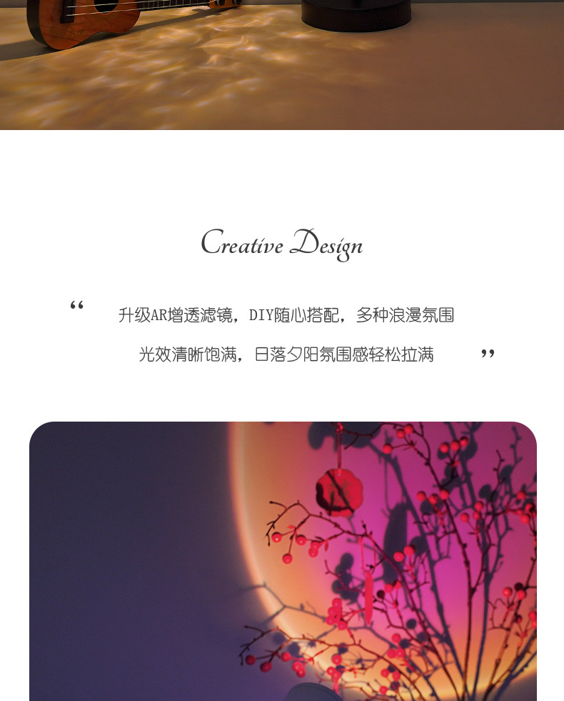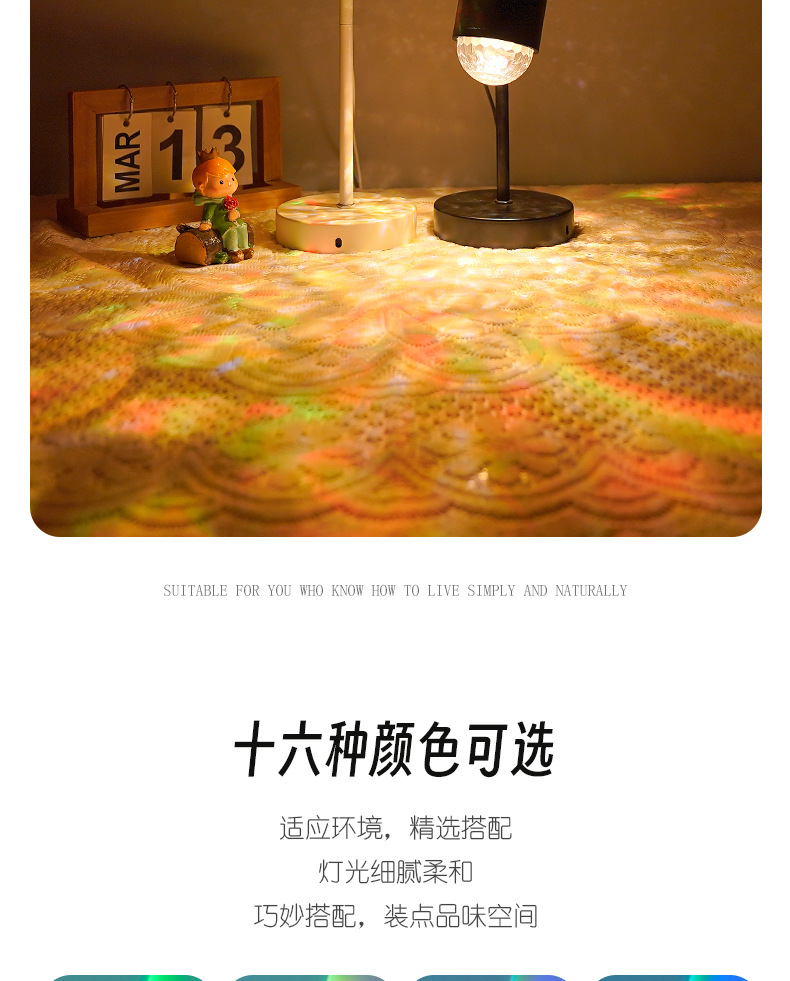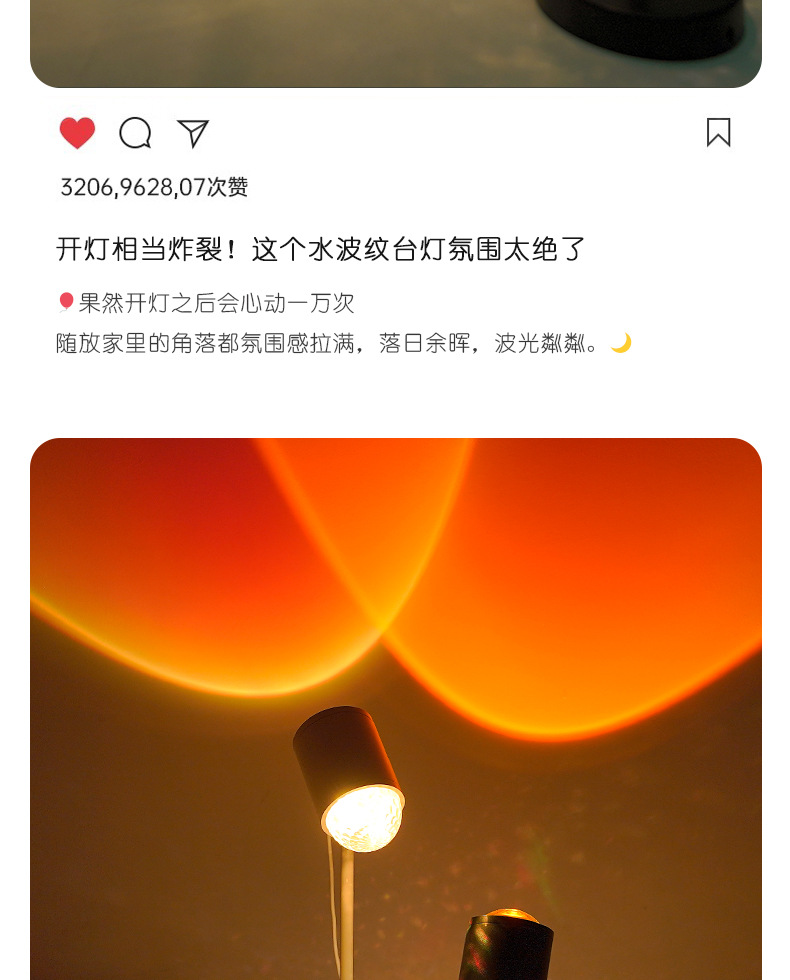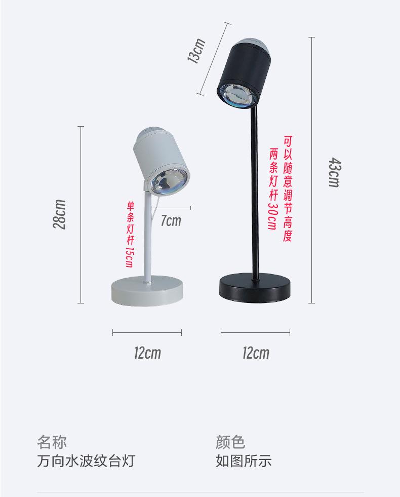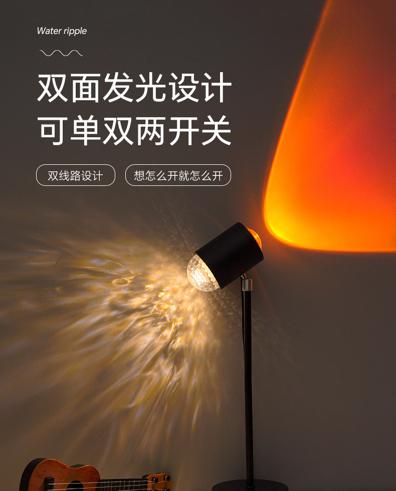 동적 회전 물 리플 램프 분위기 프로젝션 라이브 배경 더블 헤드 물 패턴 테이블 램프 일몰 그물 붉은 장식
