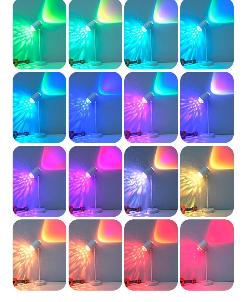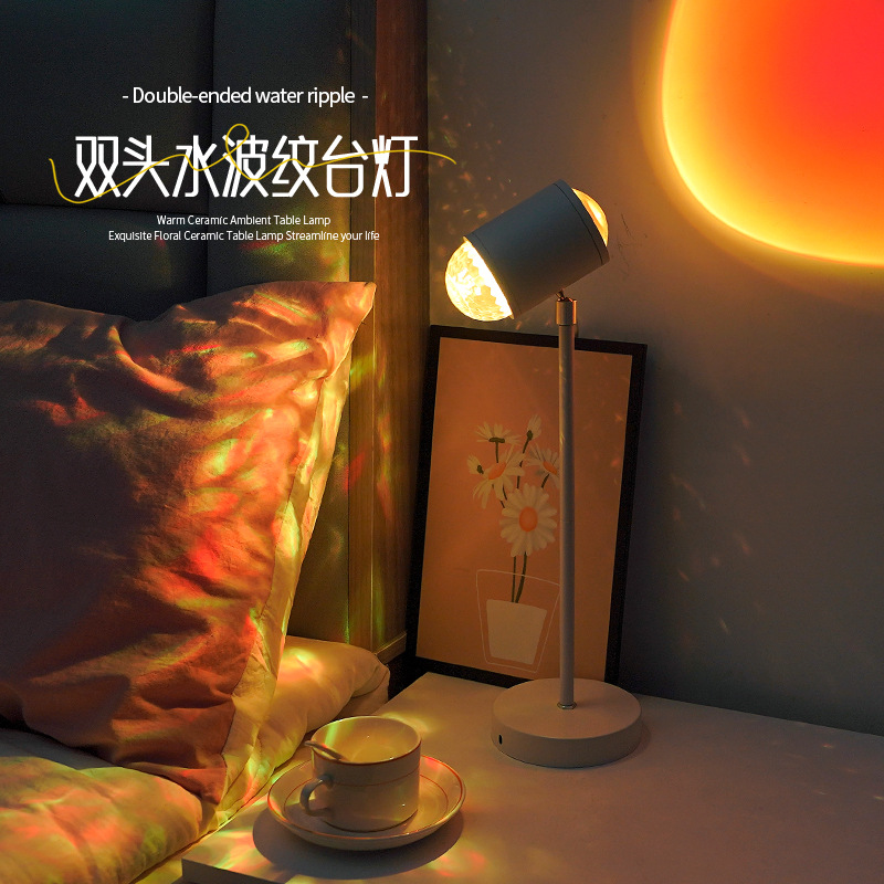 동적 회전 물 리플 램프 분위기 프로젝션 라이브 배경 더블 헤드 물 패턴 테이블 램프 일몰 그물 붉은 장식스토어 가기