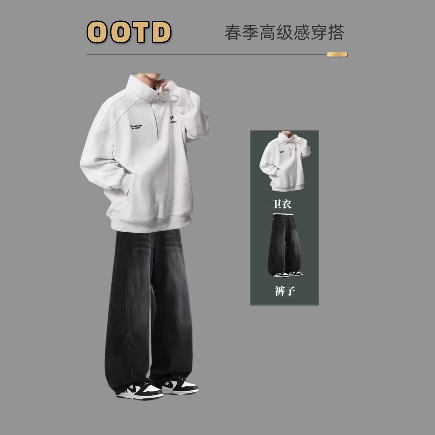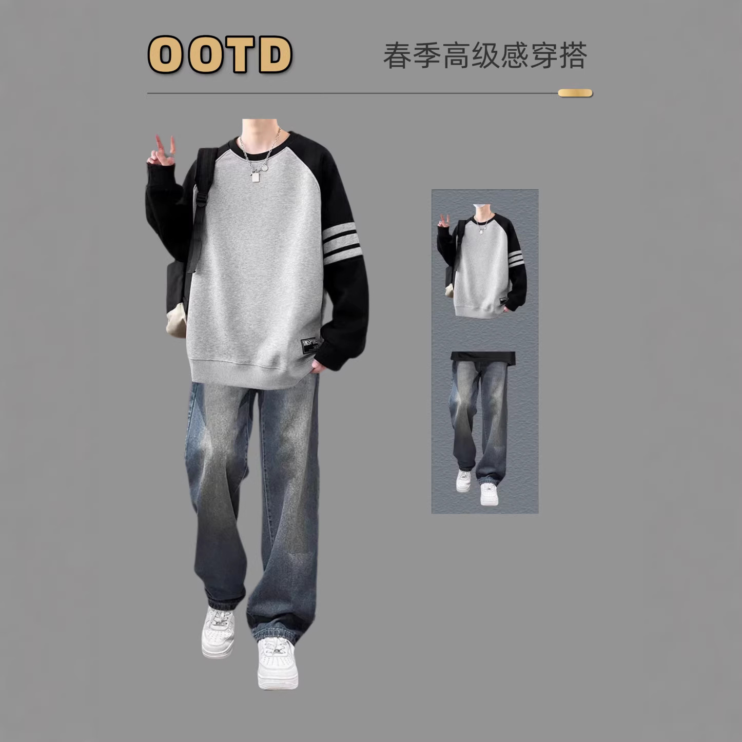 • W050 화이트 앤 그레이 스웨트셔츠 + K77 블랙 진