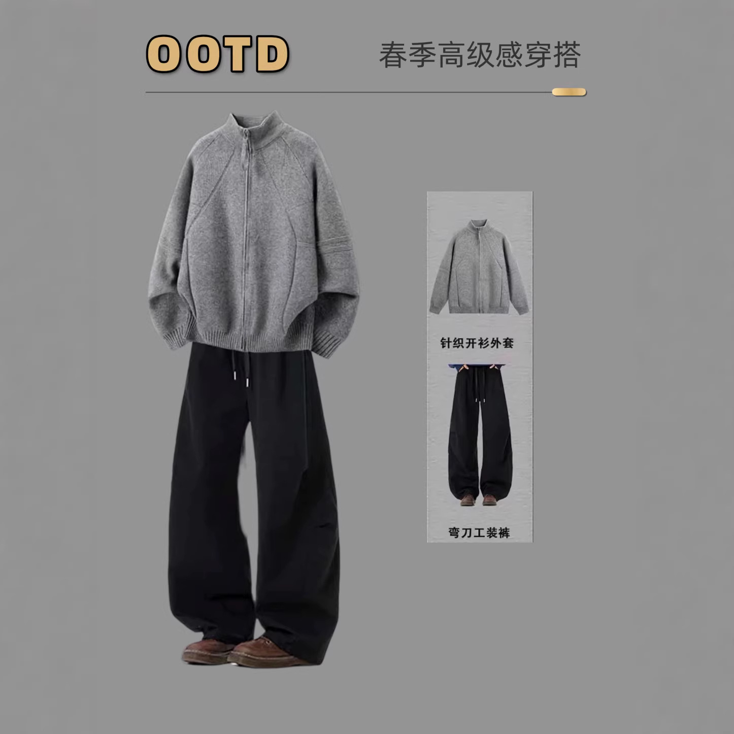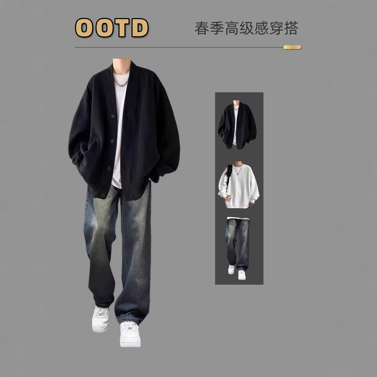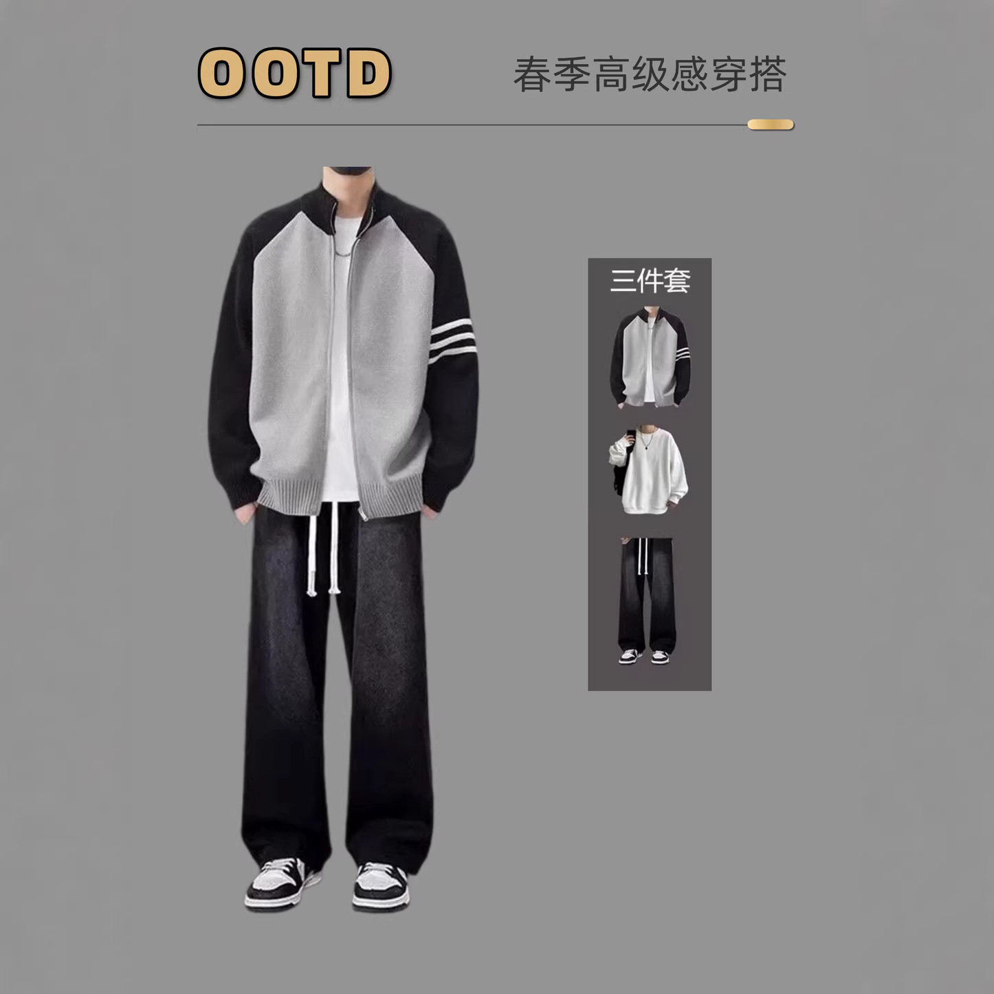 샤오슈그바 2026 봄/가을 고급스러운 투피스/쓰리피스 세트 남성 캐주얼 트렌디 의상 풀세트