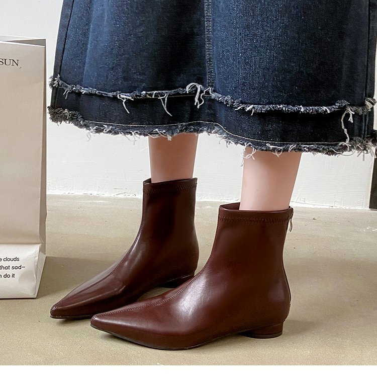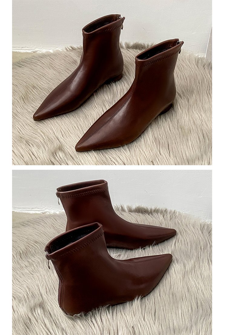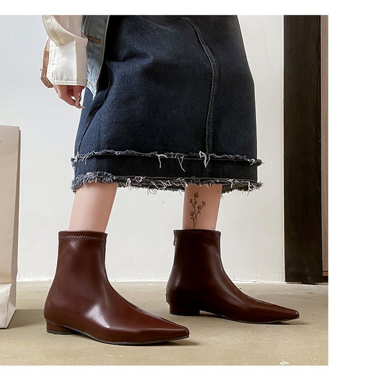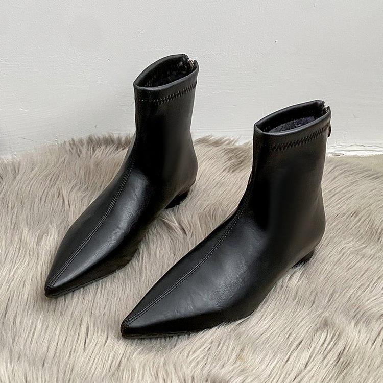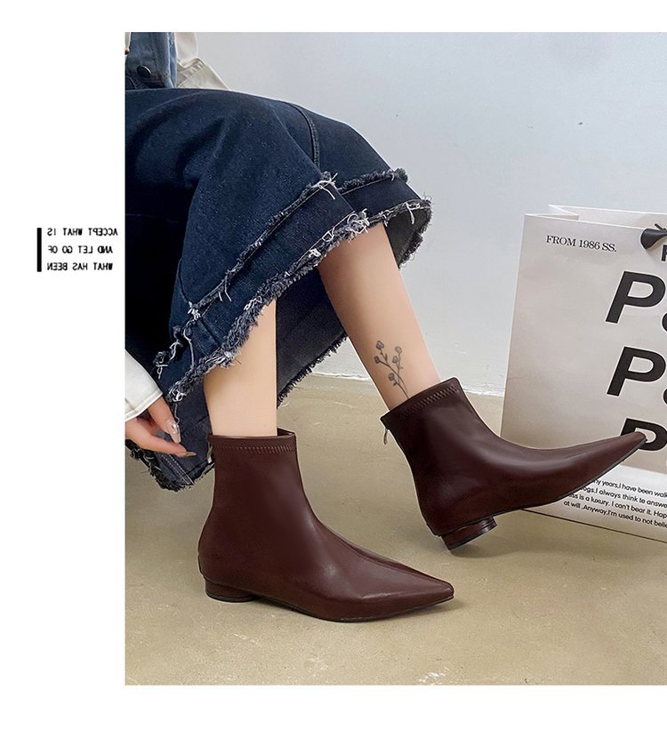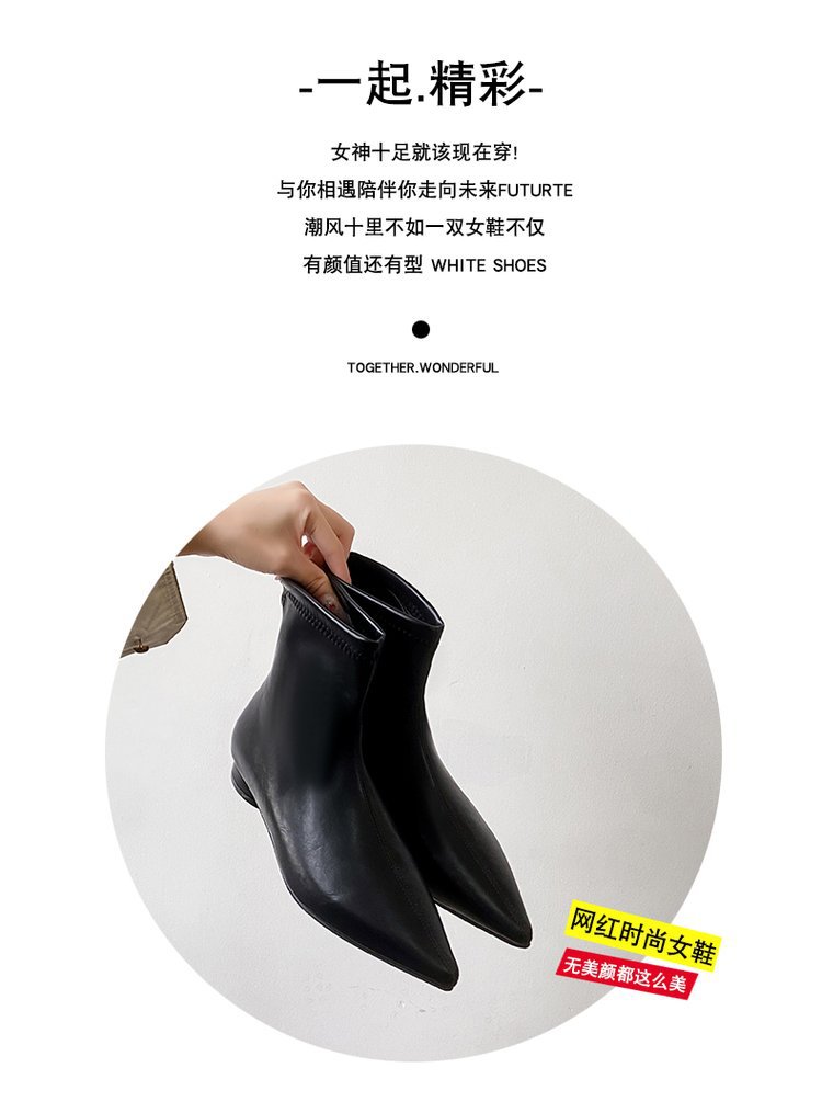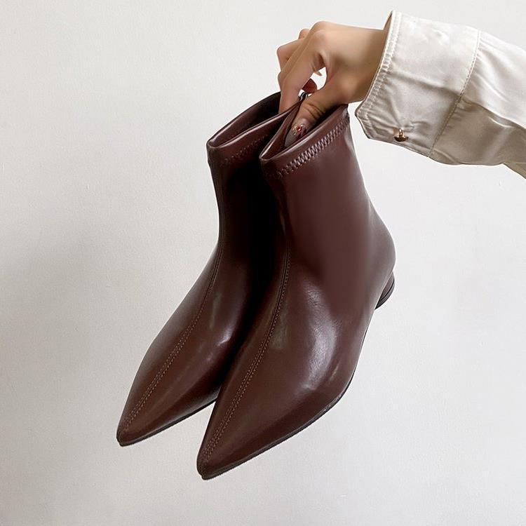 유럽과 미국의 섹시한 짧은 부츠 여성의 가을과 겨울 새로운 포인팅 두꺼운 힐 43 플러스 사이즈 패션 부츠 부드러운 가죽 간단한 아름다운 얇은 부츠스토어 가기