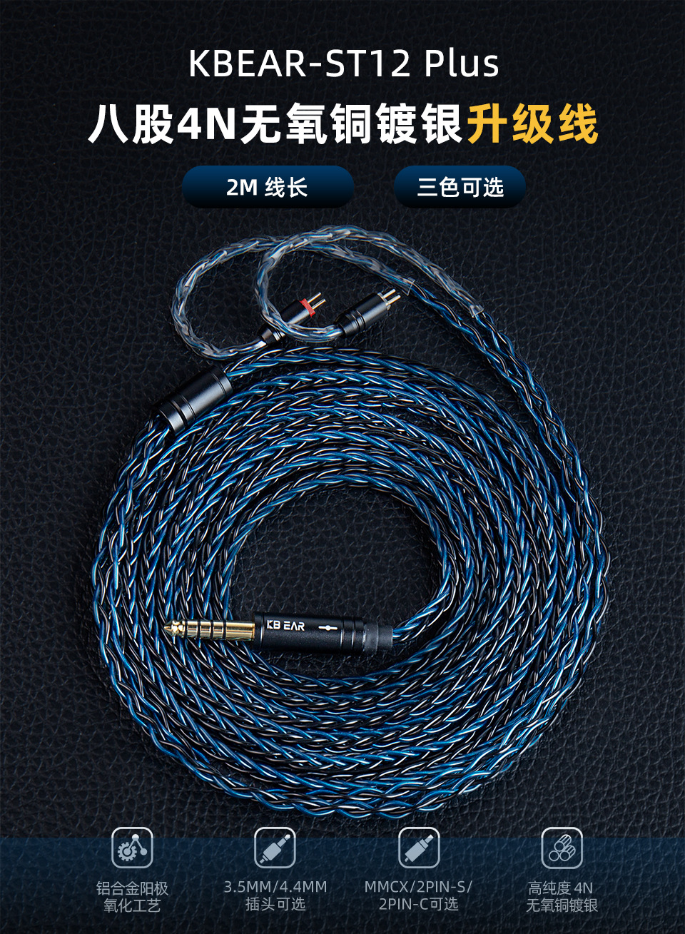 2025년 신형 KBEAR ST-12plus 헤드폰 업그레이드 케이블 2.8m심 무산소 구리 업그레이드 케이블 밸런스드 케이블스토어 가기