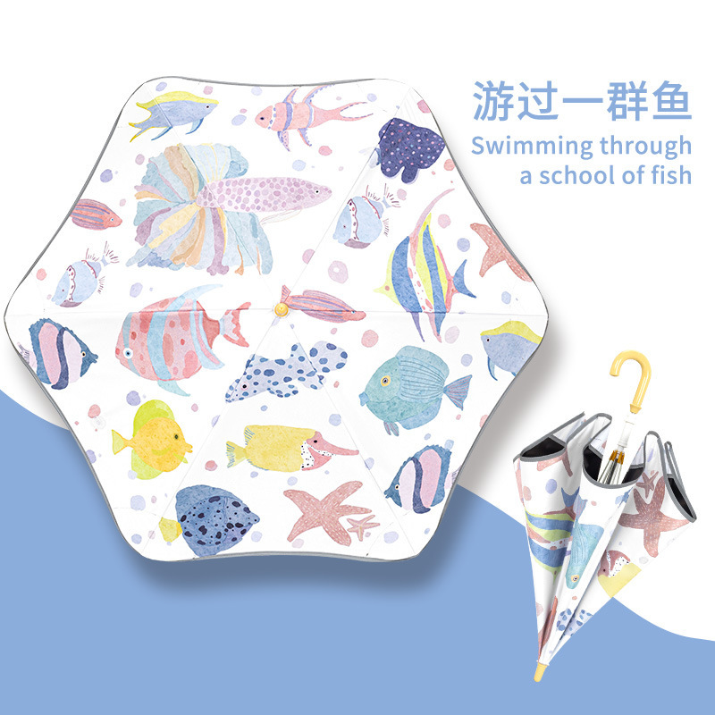 긴 손잡이 안전 둥근 어린이 우산 맑은 우산 소년과 소녀 만화 학교 특수 유치원 아기 초경량 우산스토어 가기