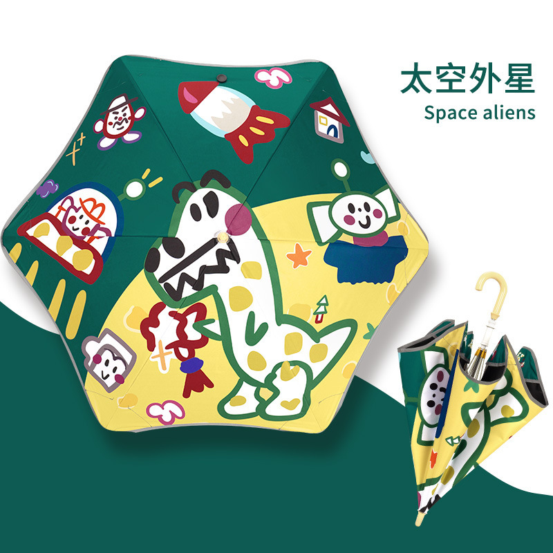 • [직경 90cm] 긴 손잡이와 둥근 모서리 우산 [동물 놀이공원] 안전 반사 스트립 포함