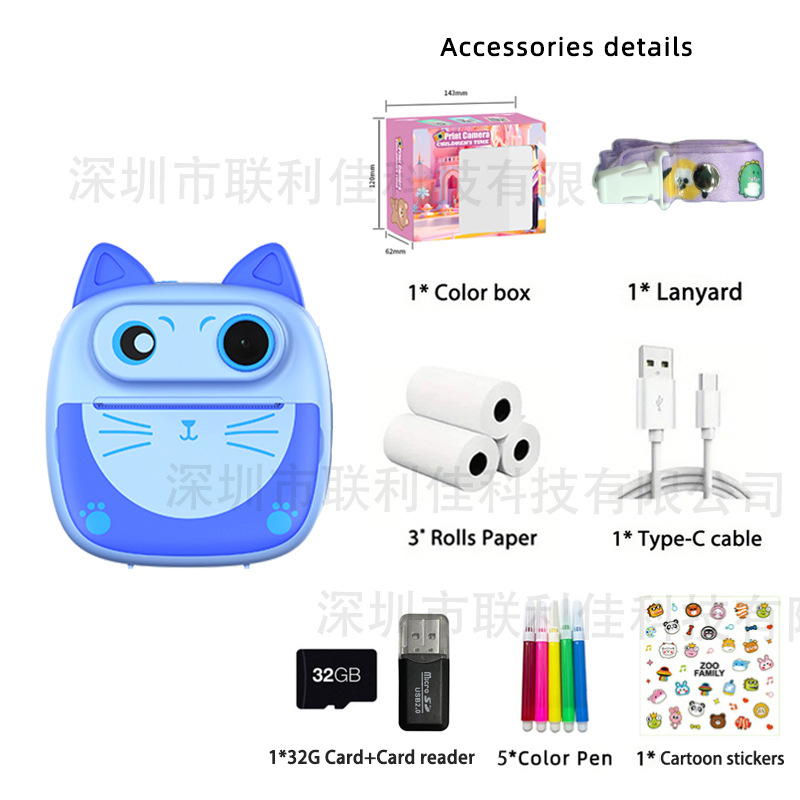 새로운 개인 모델 어린이 광전자 인쇄 카메라 만화 디지털 미니 HD 교육 장난감 헤어 지원스토어 가기