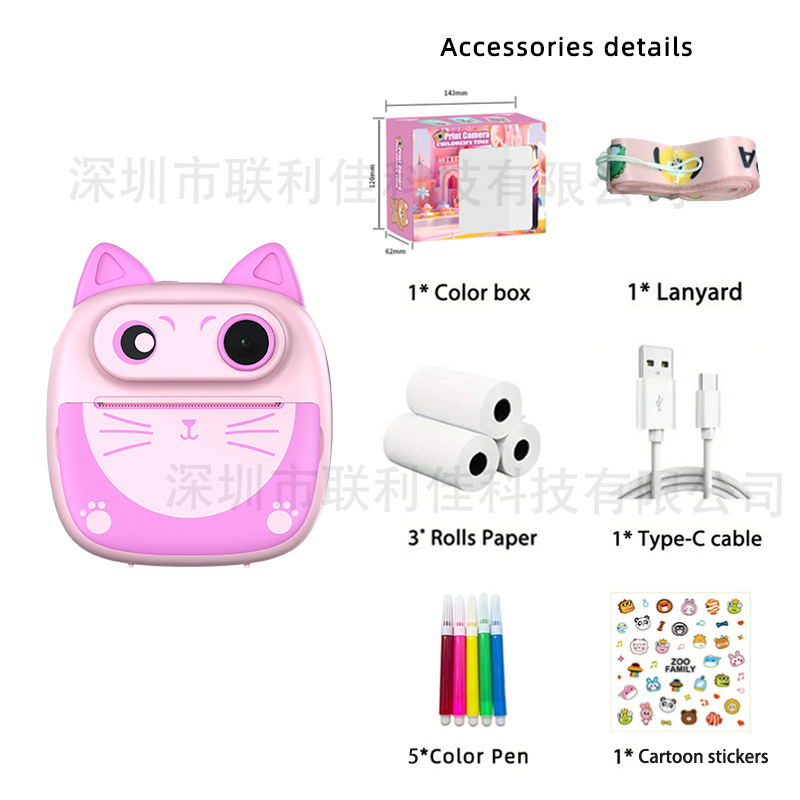 새로운 개인 모델 어린이 광전자 인쇄 카메라 만화 디지털 미니 HD 교육 장난감 헤어 지원