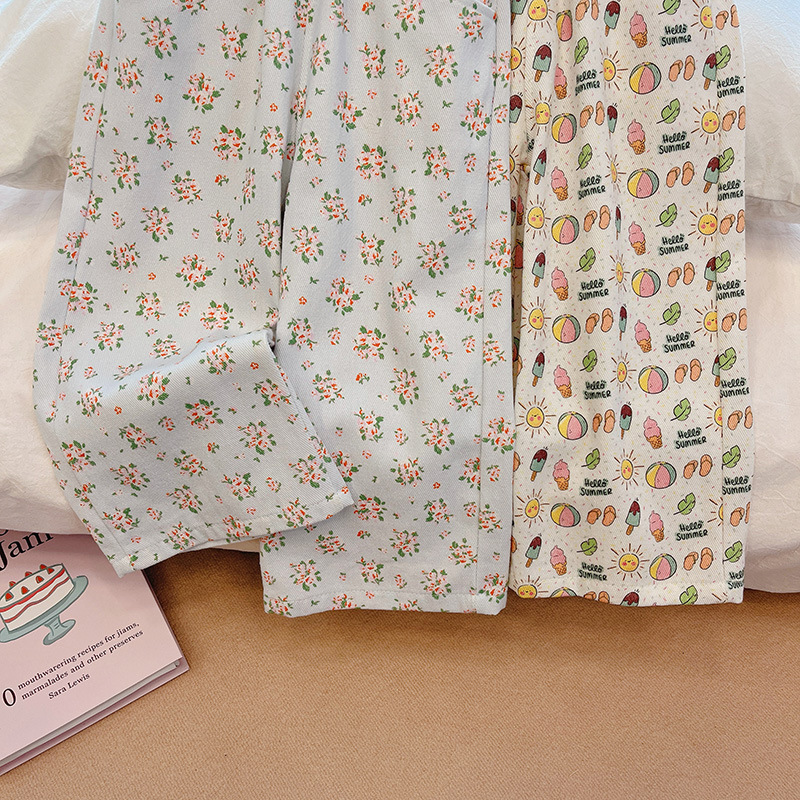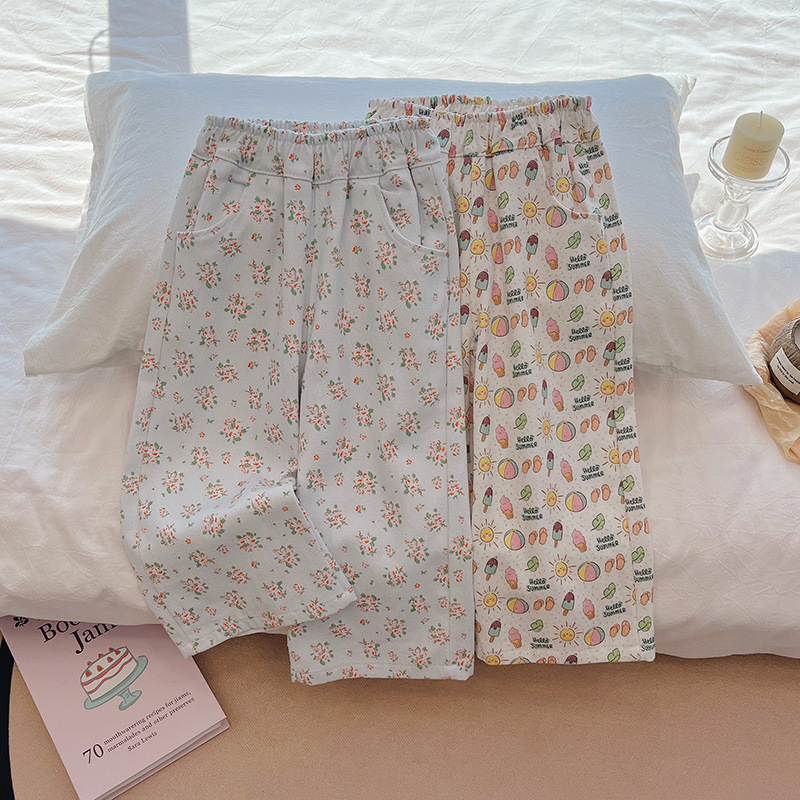 여아 가을 신작 꽃무늬 스트레이트 9부 팬츠, 목가적이고 다재다능하며 스타일리시하고 귀여운 한국 스타일, 달콤하고 패셔너블스토어 가기