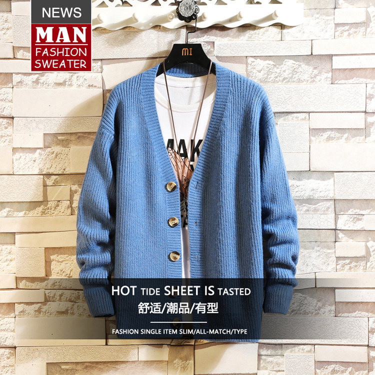 2024 아마존 대외 무역 새로운 남성 스웨터 트렌디 브랜드 패션 V 넥 니트 카디건 캐주얼 자켓 남성용 탑스토어 가기