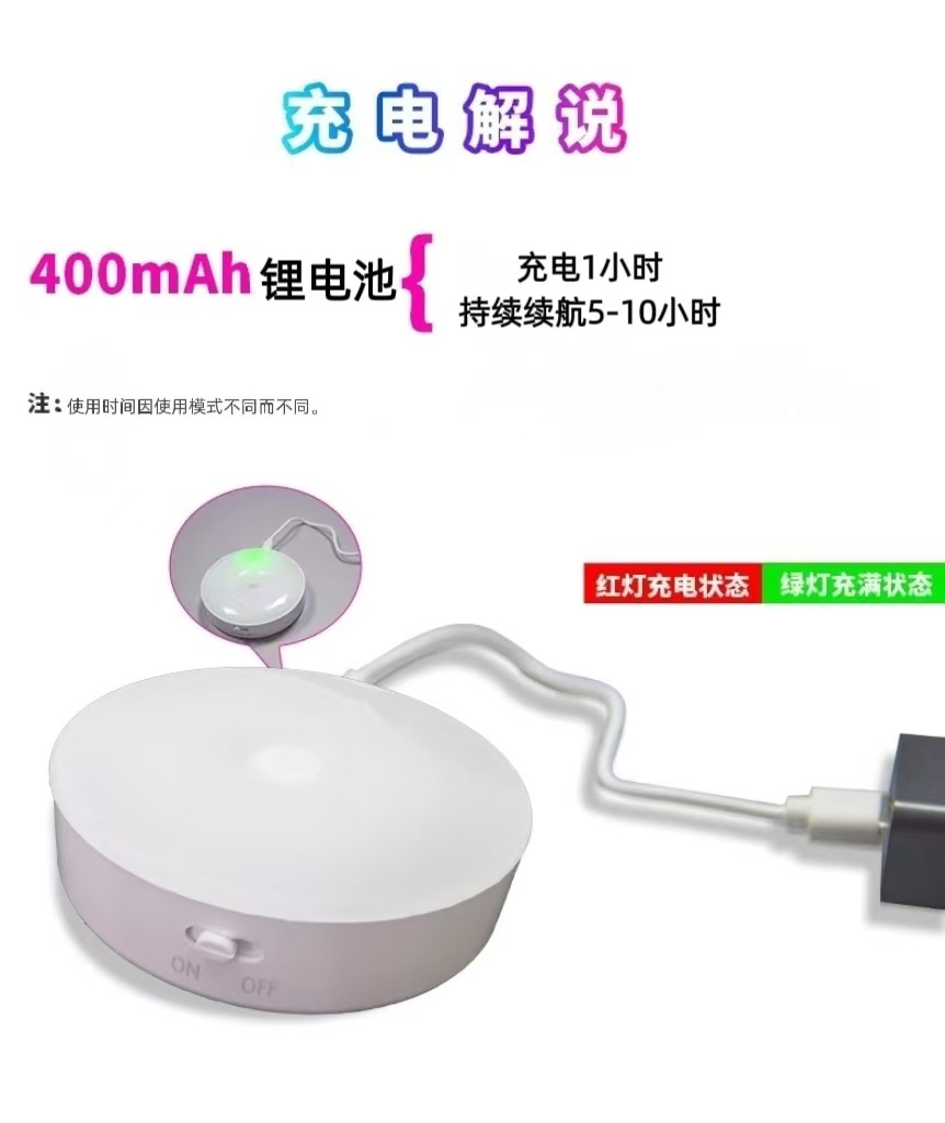 三;供电方式:内置400mAH锂电池,可循环充电。