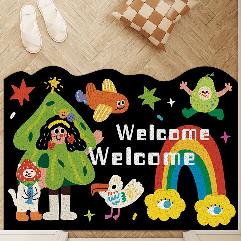 홈 플로어 매트 문 먼지 방지 실크 링 바닥 매트 만화 현관 문 내마모성 미끄럼 방지 매트 머리카락 세대스토어 가기