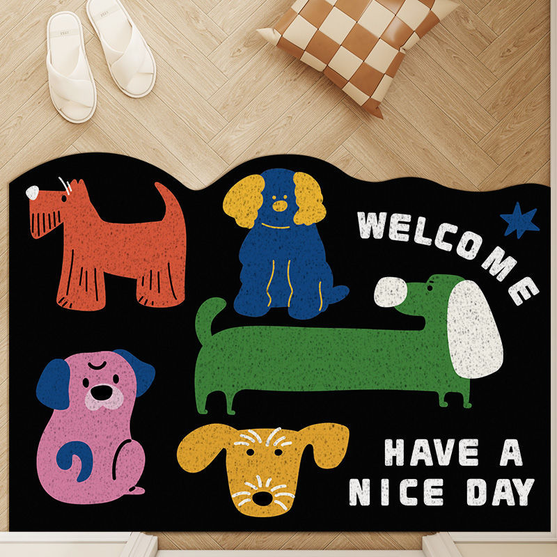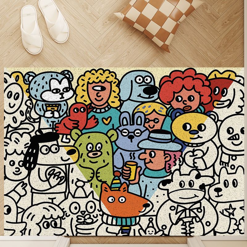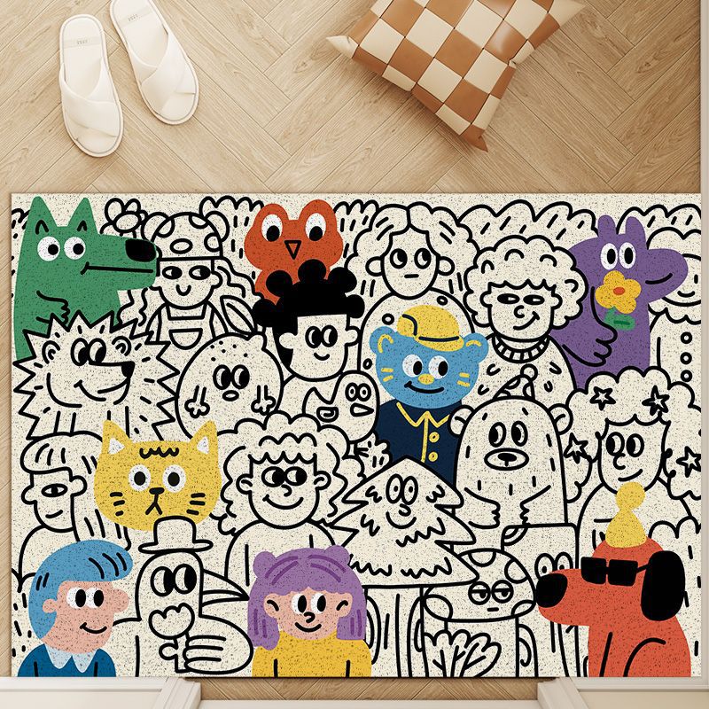 홈 플로어 매트 문 먼지 방지 실크 링 바닥 매트 만화 현관 문 내마모성 미끄럼 방지 매트 머리카락 세대