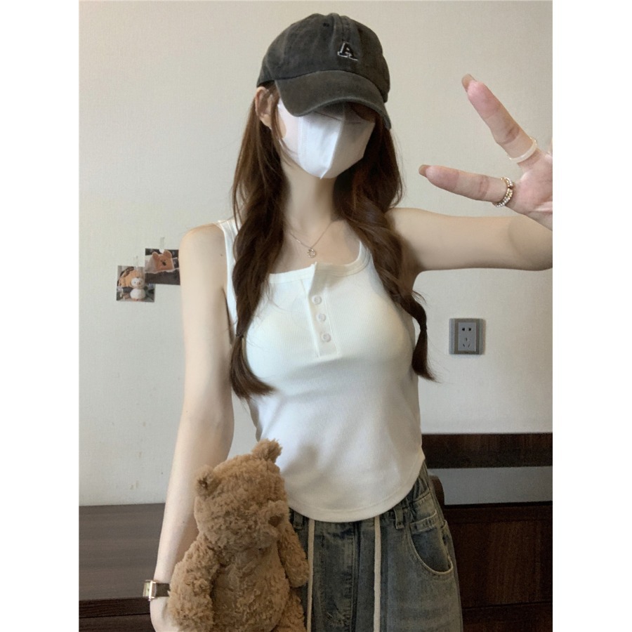 순수한 욕망 버튼 불규칙한 슬링 가슴 패드와 아름다운 뒤 조끼 포장 가슴 외부 착용 보토밍 짧은 민소매 튜브 탑스토어 가기