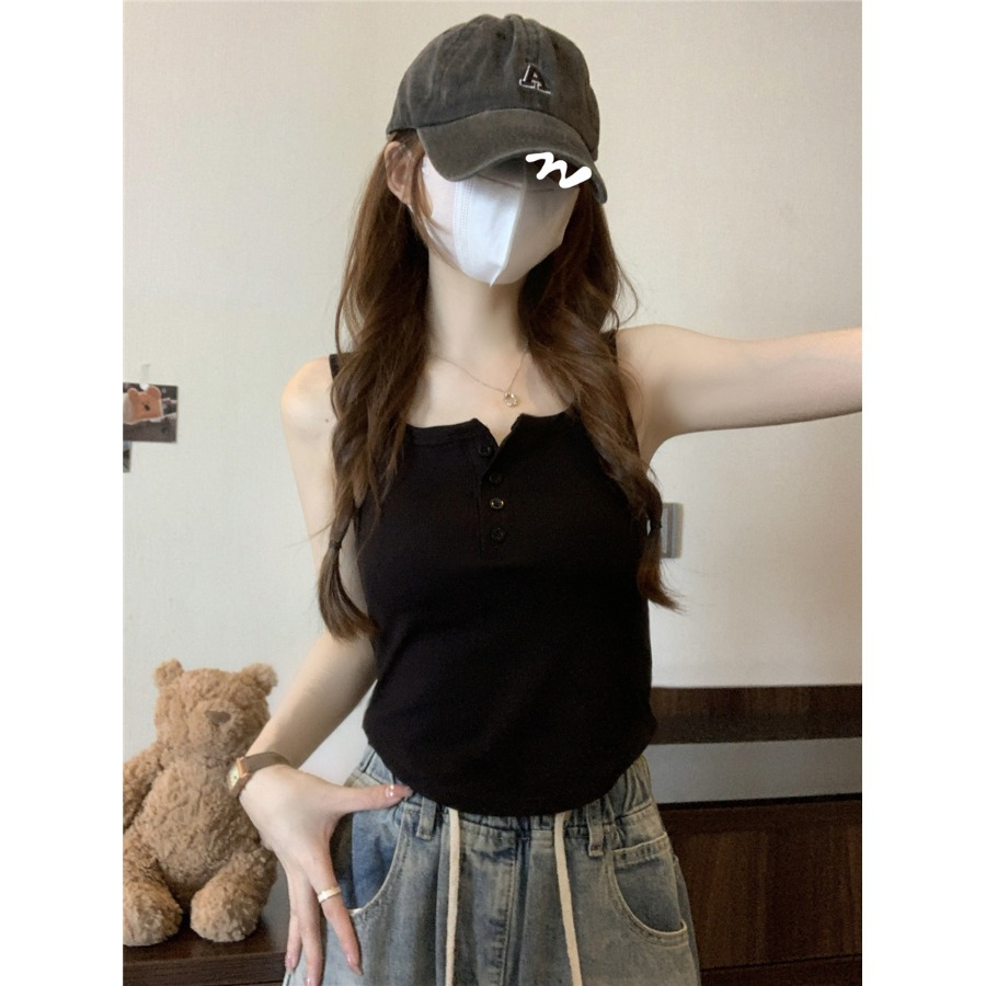 纯欲方领纽扣吊带美背